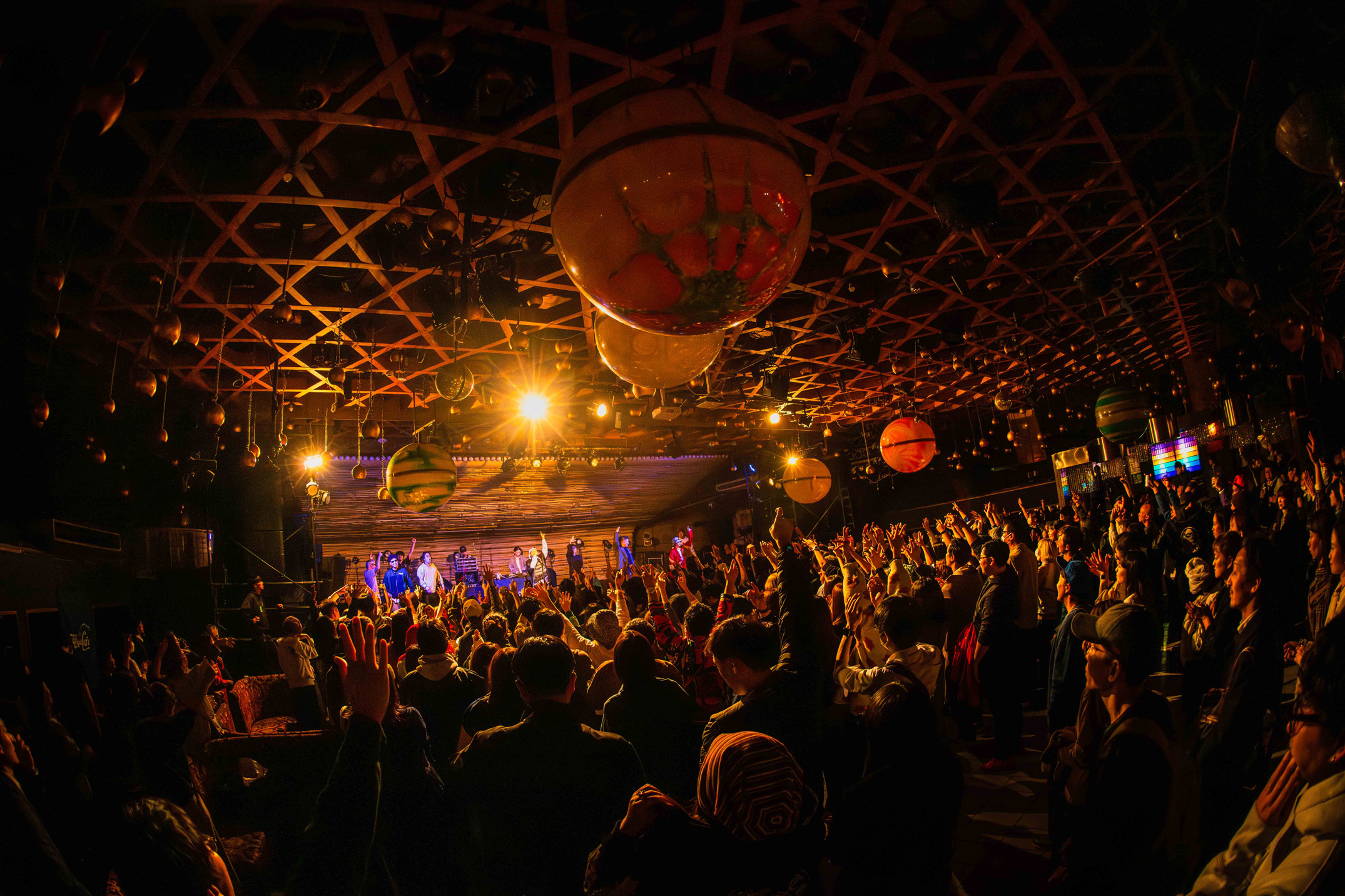「今のところ、今日が我々のラスト味園になりそうなんで、みんなとめちゃくちゃ楽しい時間を過ごして、最高のパーティーにしたいと思います。味園の天井を突き破るほど手を高く上げてもらっていいですか? バースやフックも関係なく手をぶん回して、お互い疲れるまで「マジでハイ」になろうぜ!」