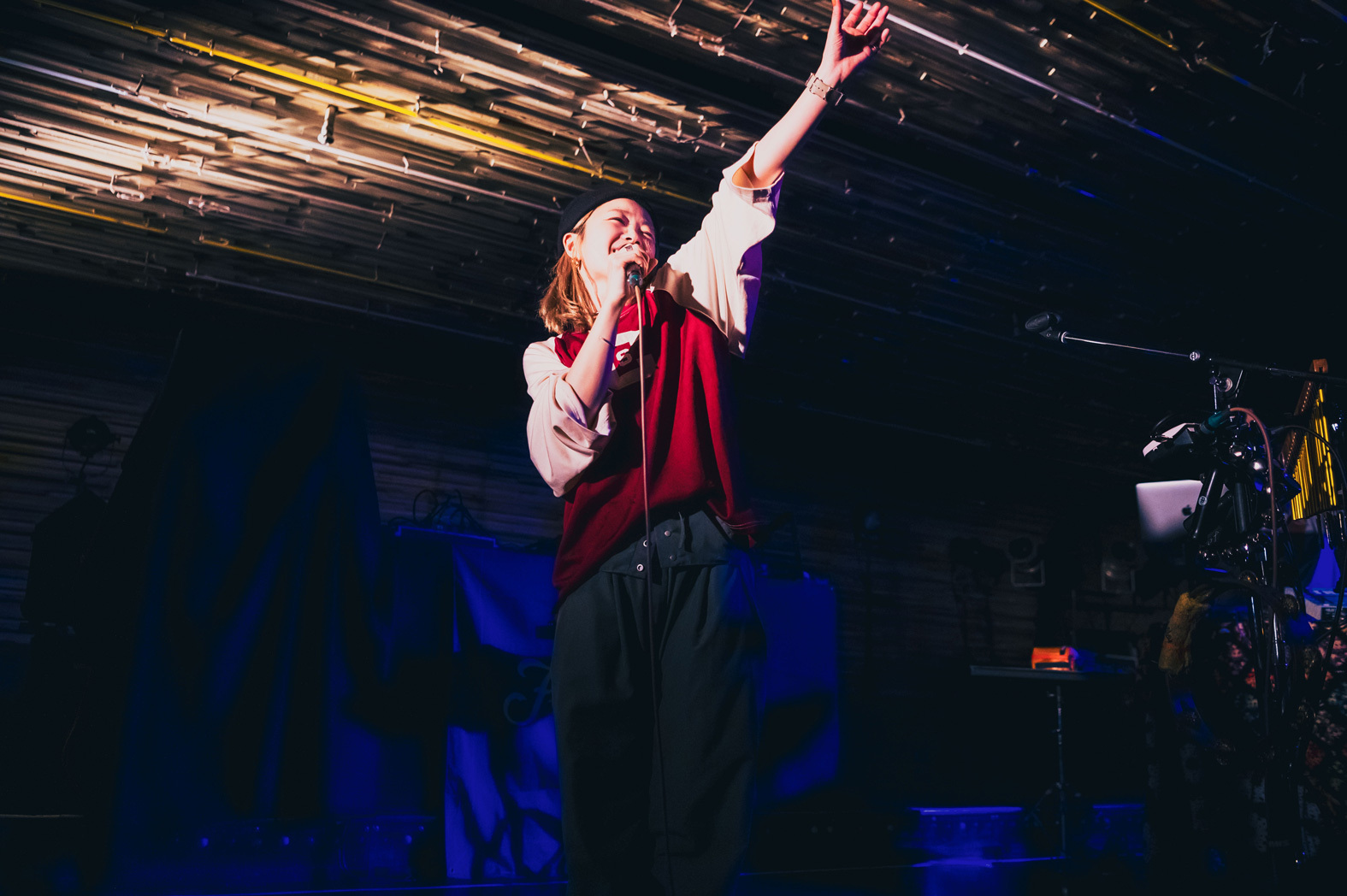 「味園は憧れの場所だったんですけど、もうちょっとでなくなっちゃう前に年内にもう一回来られて、まさかの藤井隆さん、そして梅田サイファーとご一緒できるなんてとんでもない夜なので、皆さん一緒に『SHAKE』されちゃってください! それこそ梅田サイファーのKZくんがブッキングしてくれて私は去年も『SHAKE』に、ヒップホップの中に混ぜてもらって……そのおかげで曲ができたぐらい大事な日になったので、今日も出られてすごくうれしいです」