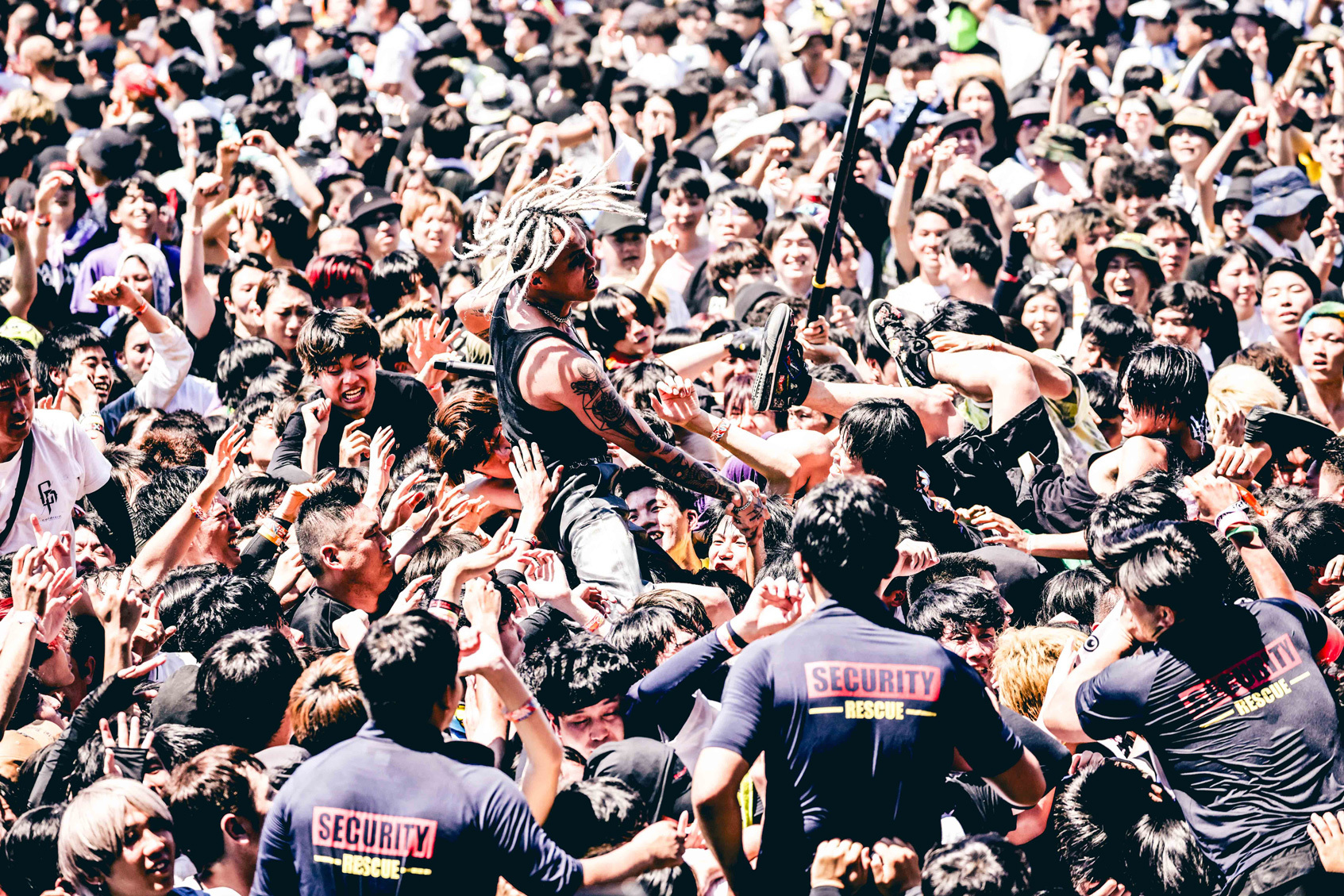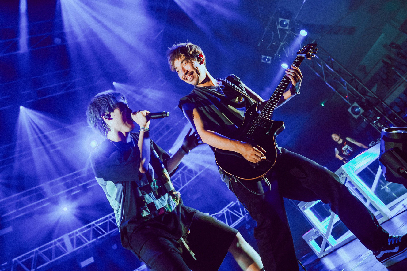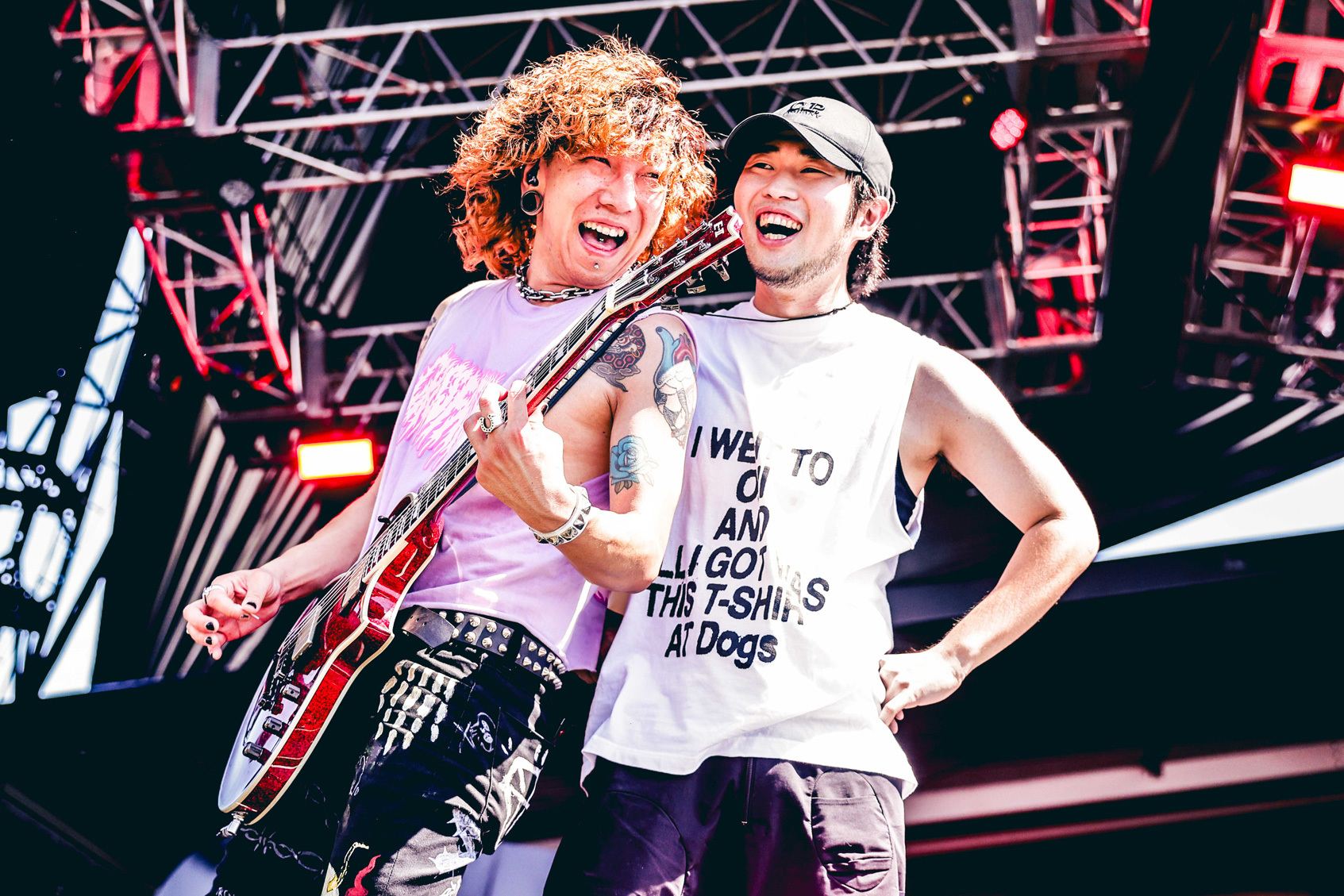 Soは「めちゃくちゃ暑いなー! 最高やな!」と笑顔を見せ、「大切な『ジャイガ』のために新曲を持ってきました!」と、『ジャイガ』開催前にリリースされたばかりの「Fist for the New Era」をライブ初お披露目。SoのクリーンボイスとMinamiのスクリームのバランスが心地良く、観客は初見でもばっちりジャンプ! さらにSoとMinamiがツーステップを踏むと、当然ながらフロアも全力で砂埃を巻き起こす。一度火がついた熱はおさまることがなく、圧巻の景色を更新し続けた。Soは「最高なみんなと、あと2曲ブチかましたらどうなってしまうんやろうとワクワクしてるんですけど、どうですか!?死ぬなよ! でもブチかまそうぜ! ギリギリまで攻めていこうぜお前ら!」と叫び、「Virtue and Vice」「Luck Will Be There」でフルスロットル! 新旧織り交ぜたセットリストと大迫力のステージで、忘れられない夏の思い出を作り上げた。