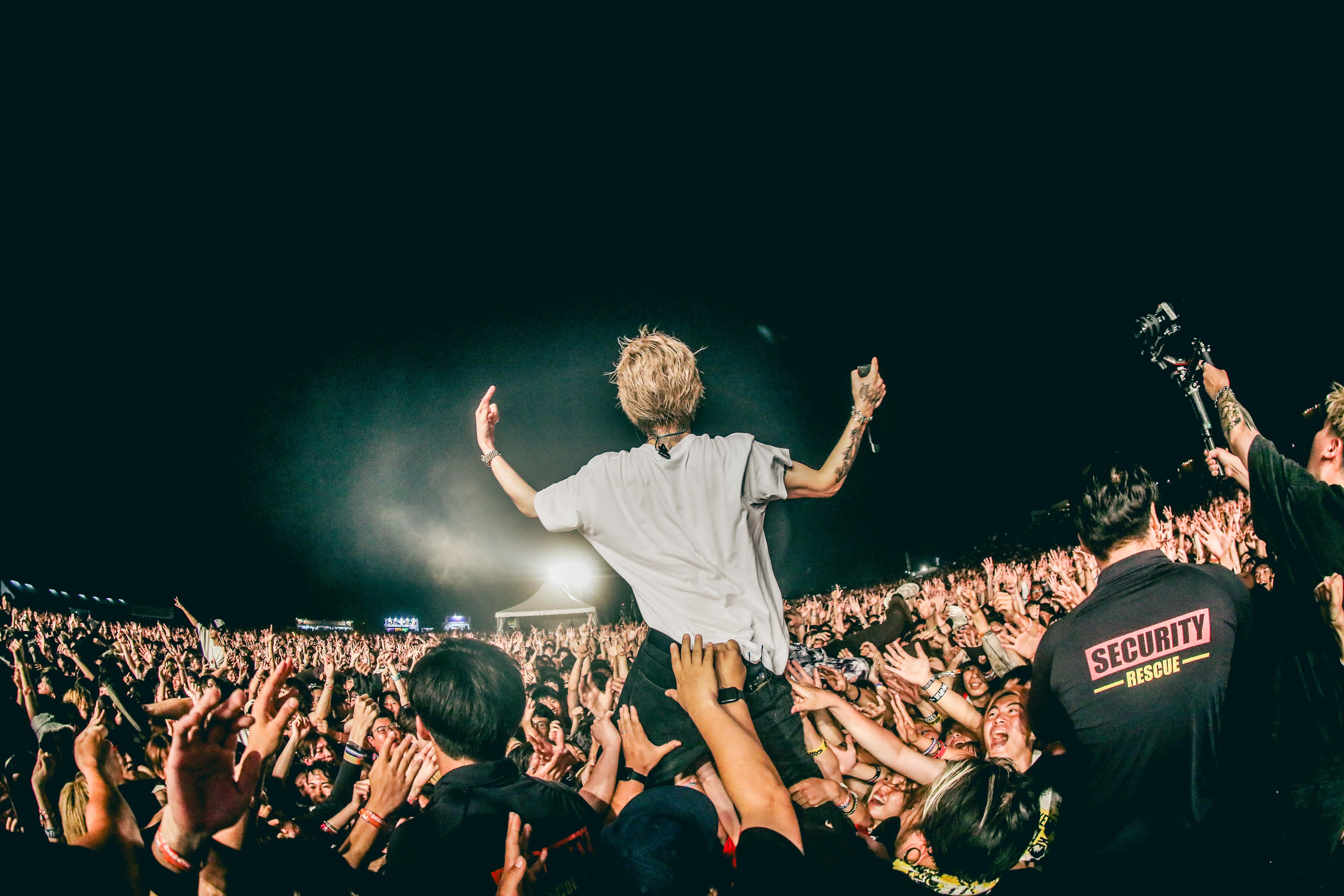 また、朝に地元福岡の先輩バンド・Paleduskのステージに参加したことを話し「音楽やって良かったなって瞬間が今日1日でたくさんありました。俺たちには、こうやってわけわかんないぐらいぐちゃぐちゃになって楽しめる文化があります。日本のアーティストみんな好きでしょ?これからもカルチャーを潰さずにつないでいきましょう。俺らの決意の歌を」と『劇場版ハイキュー!! ゴミ捨て場の決戦』の主題歌「オレンジ」を披露した。会場中から聴こえる大ボリュームのシンガロングが胸に迫る。愛の力が溢れた素晴らしい時間だった。