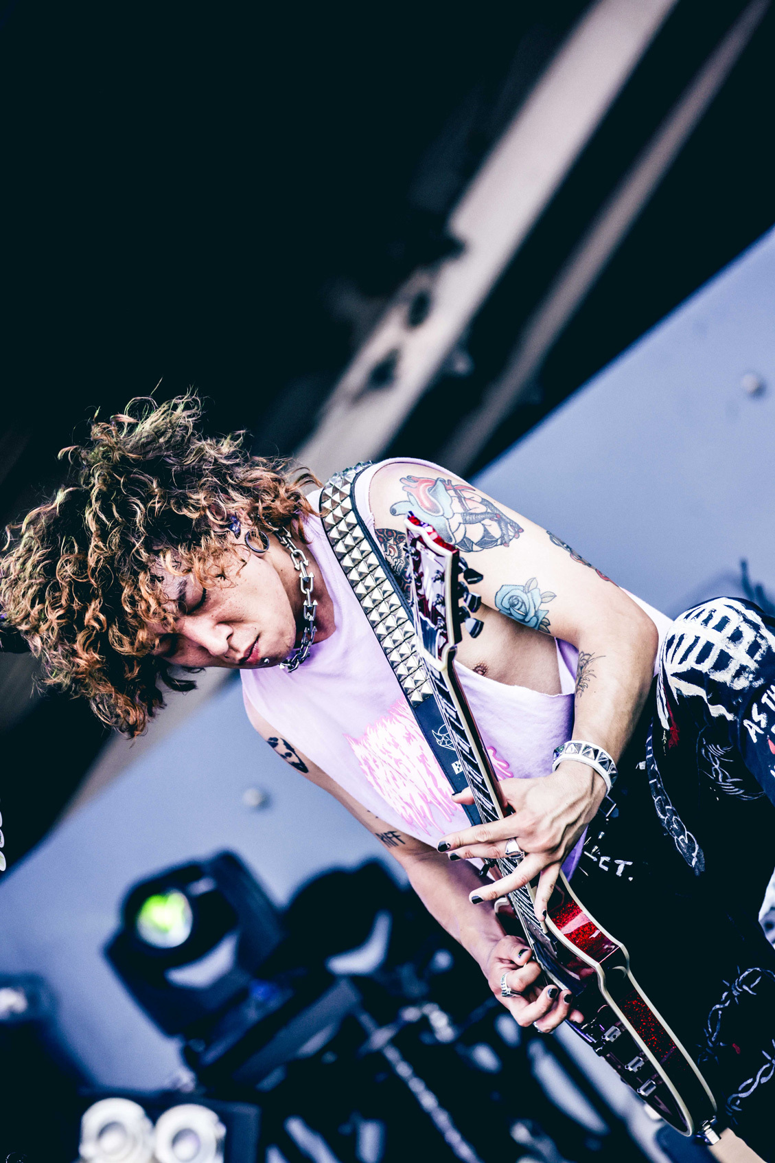 さらに「年を重ね、音楽との接し方も変わってきた。でも唯一変わってへんのがライブ。このままの生き様をギンギンに感じとって明日への糧と力に変えてくれ!」と今年開催したワンマンツアーのタイトル名にもなっていた「Blown in the reborn」を披露して、最新のロットンの姿を示した。このあと出演するマキシマム ザ ホルモンをフィーチャーして絆を感じさせる場面もありながら、最後は大名曲「金色グラフティー」を投下。鼓膜が破れるかと思うほどの爆裂サウンドで熱狂を作り出した。