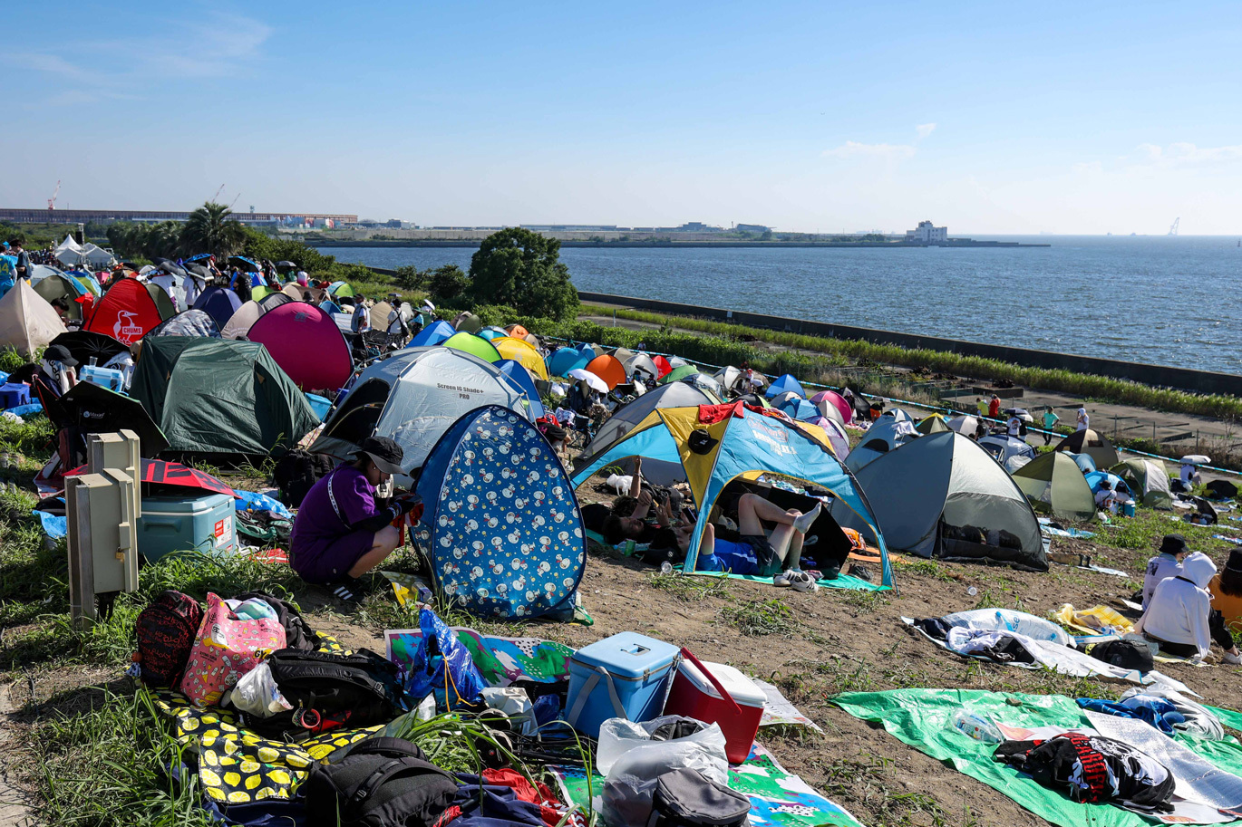 1日目に続き、絶好の(絶好すぎるくらいの)フェス日和。眩しい青空と日光に照らされた舞洲には、朝早くからお目当てのアーティストグッズを身につけたオーディエンスがたくさん訪れた。