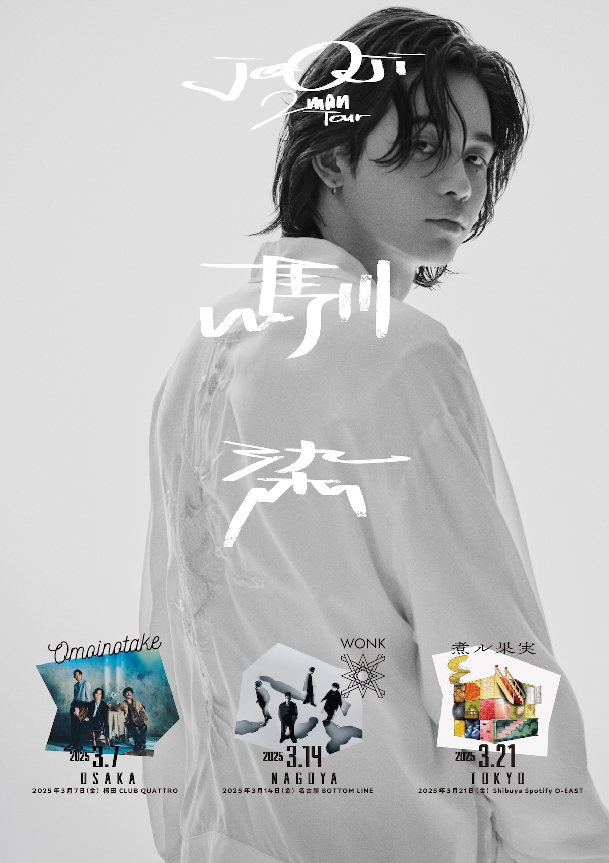 鳥取県出身のアーティスト・jo0ji(読み:ジョージ)が、来年3月に東名阪で開催する『jo0ji 2man tour「馴染」』。本ツアーの3月14日の愛知・名古屋 BOTTOM LINE公演にエクスペリメンタル・ソウルバンド WONKが出演することが明らかになった。