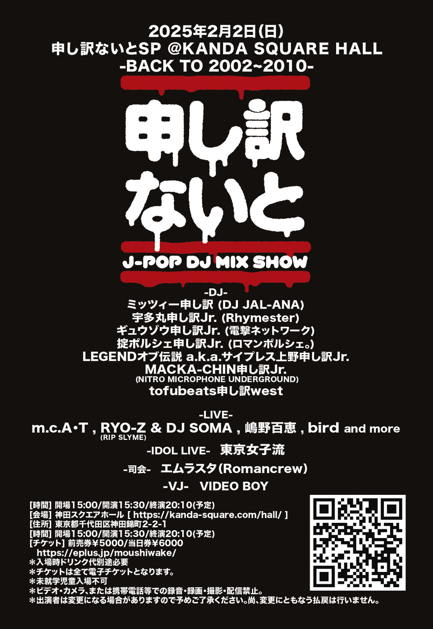 同イベントは、1996年にスタート、2013年に活動休止するまで、J-POP DJ EVENTの一時代を築いた「申し訳ないと」のスペシャル版。今年8月にPerfumeの25周年を記念したエキシビション『Perfume Disco-Graphy』でのDJイベント「DISCO!DISCO!DISCO!」にて奇跡の復活を果たし、が数分で完売するなど大きな話題となった。