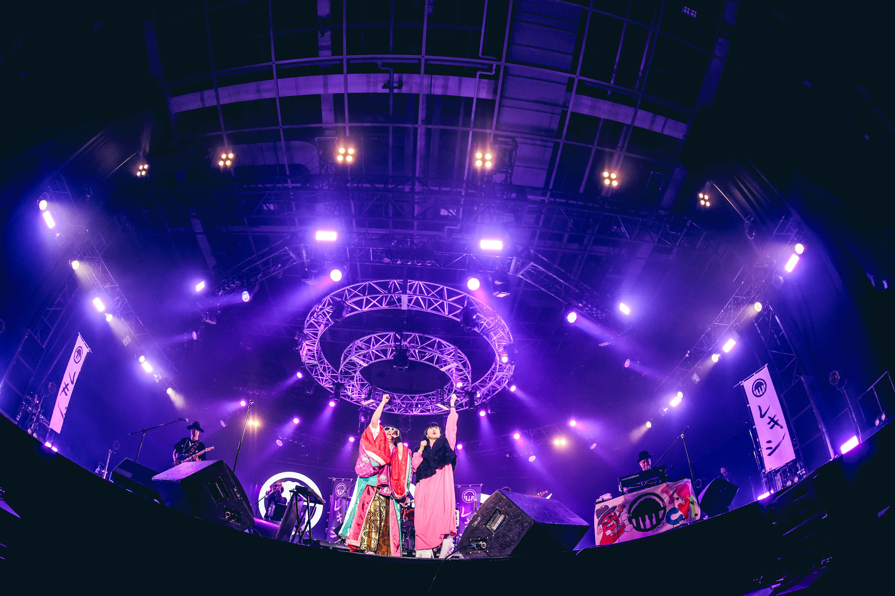 「頭5〜6分はおしゃべりしたかな。そこからやっと「きらきら武士」が始まり、「SHIKIBU」の途中では(DJの)仁井(聡子)さんが飛び入り参加して。十二単のジャケットを着たりアドリブもありながら、キュウソネコカミも出てきてくれたり……」(板東)と、そのカオスっぷりを如実にレポート。ところで、進行の都合上、DJ陣は事前にライブのセットリストを確認することも多いのだが、この日のレキシの予定曲数は5曲。のはずだったのだが……。
