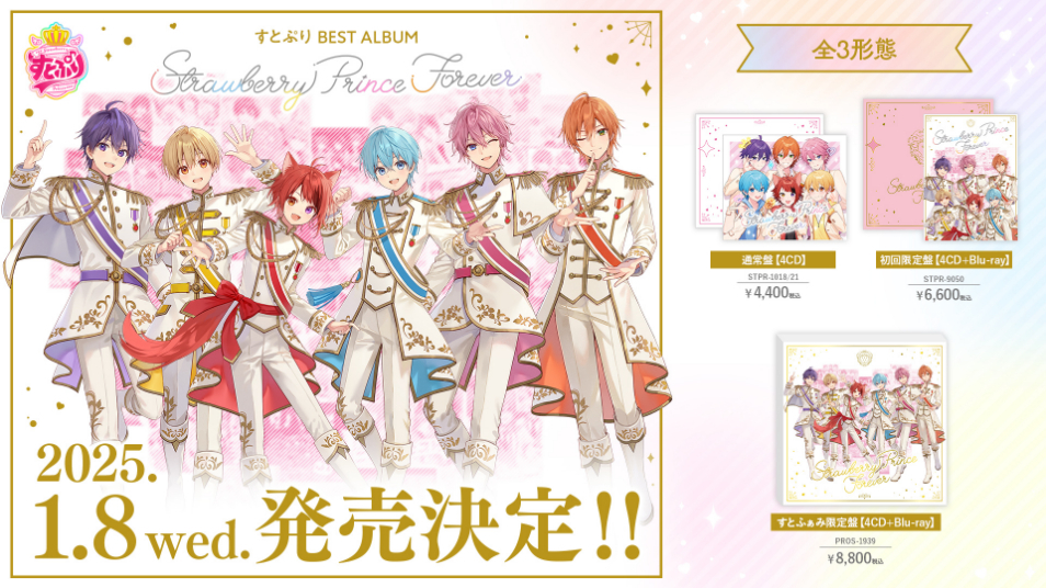 すとぷりにとって初のベストアルバムとなる『Strawberry Prince Forever』は、初オリジナル曲「Strawberry Prince Forever」から最新曲まで、リスナー投票企画などを交えながら選定された合計84曲が4枚組で収録されている。