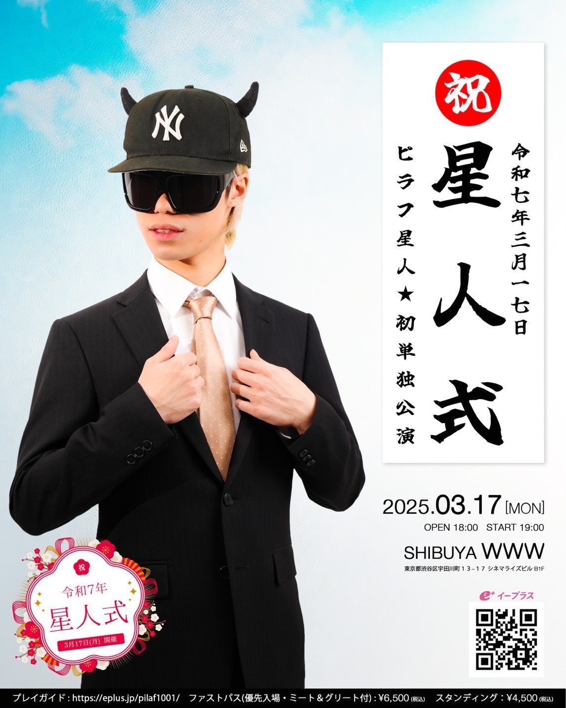 『星人式』は、そんなピラフ星人にとって初のワンマン公演。チケットは、イープラスにて2月2日(日)23時59分まで最速先着受付中。