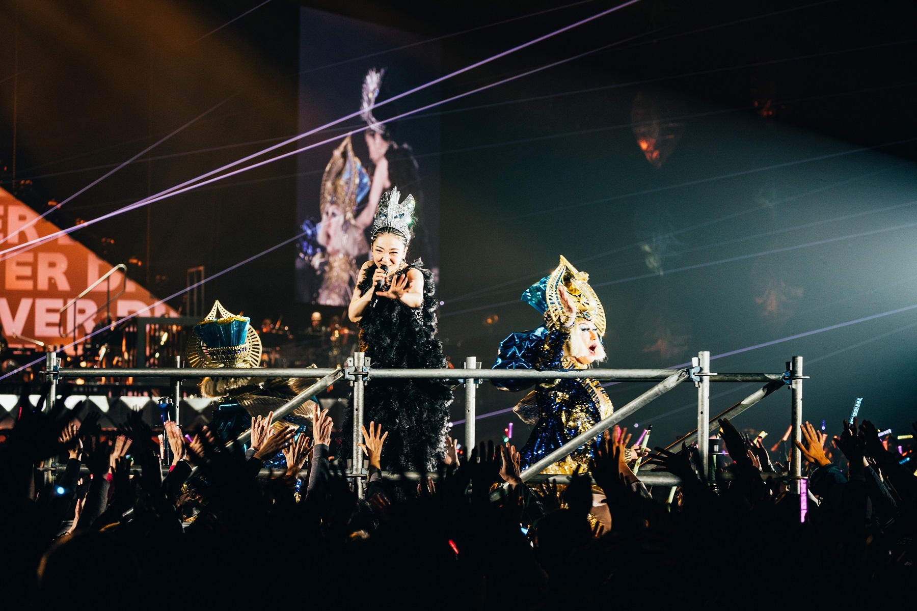 会場に入ってまず驚かされるのが、ステージ中央にそびえるMISIAの巨大オブジェ。まるでオーディエンス一人ひとりを見守るように鎮座するその姿は、神々しくありつつも、ポップなアイコンとしてもまさに「THE TOUR OF MISIA」の世界を象徴しており印象的。
