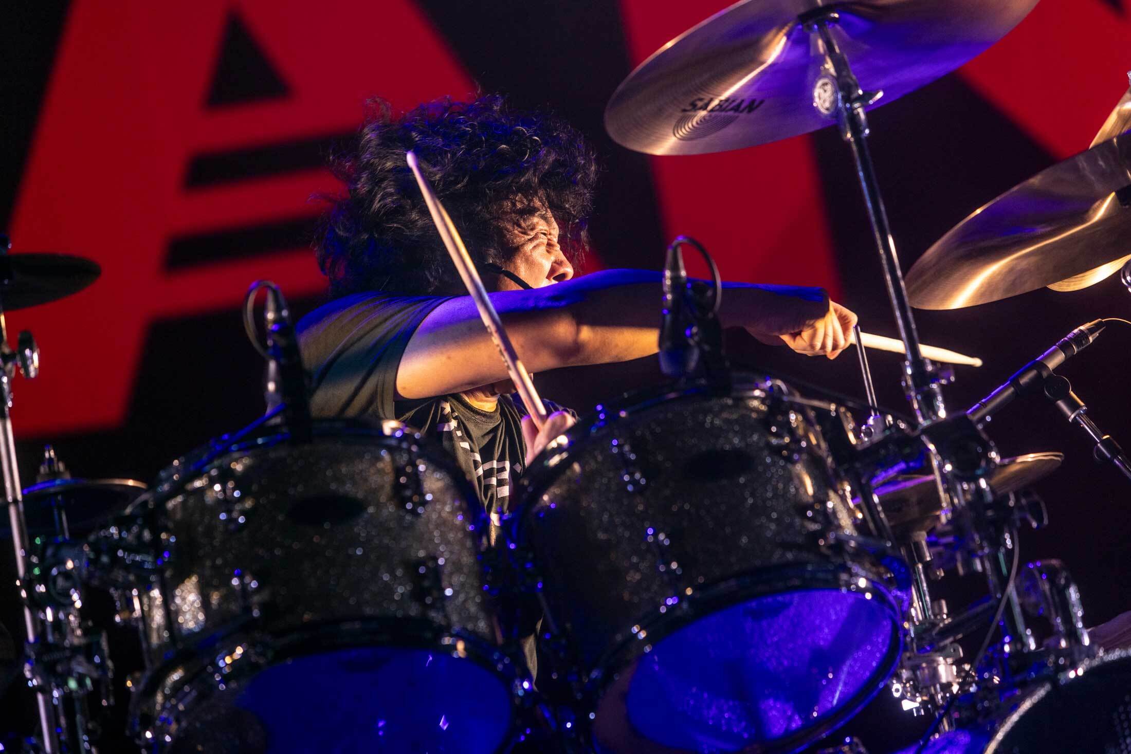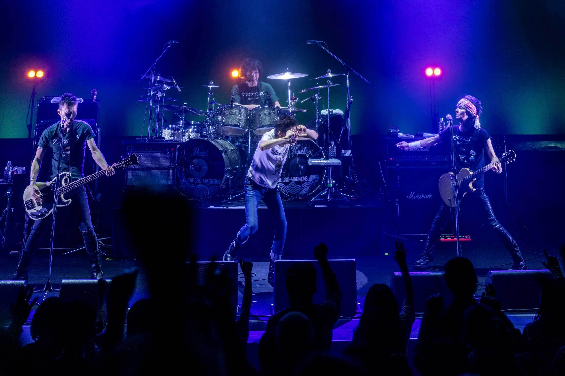 さらに、長谷川、牧、ジェットセイヤ、柳沢の順でボーカルリレーも楽しめる「デッドマンズチェイス」、柳沢のギターソロから始まった「クロスロオオオード」と序盤からアクセル全開で畳みかけ、会場の熱気はぐんぐんと上昇! メンバーもその熱量に負けることなくステージ上を自由に動き、ジェットセイヤは立ったままドラムを叩くなど、目を引くパフォーマンスからもこの時間を心底楽しんでいることが伝わってくる。