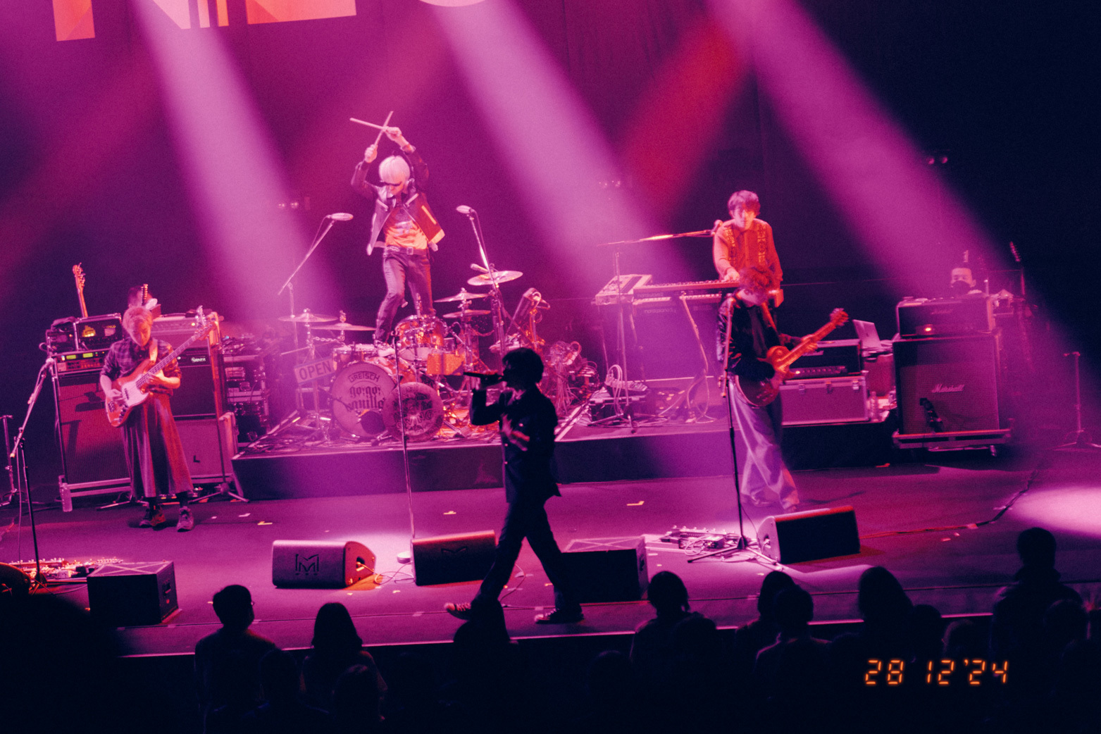 音楽、ロックンロールを通して、会場全体が共鳴しながら互いに高めあう様はただただ圧巻の一言。そこに、「本日が今年(2024年)最後の演奏になります。最後の一息までここで出して帰るからみんな最後まで楽しんで。最高の1日になったなと思ってもらえたら最高です。どんどんやろう!」(ヒロト)と「炎」、イントロで桐田と小林が楽しそうに踊っていた「雷雨決行」、ヒロトのブルースハープに合わせマーシーがステップを踏んでいた「暴動チャイル(BO CHILE)」が放たれ、その熱狂ぶりは留まるところを知らない。