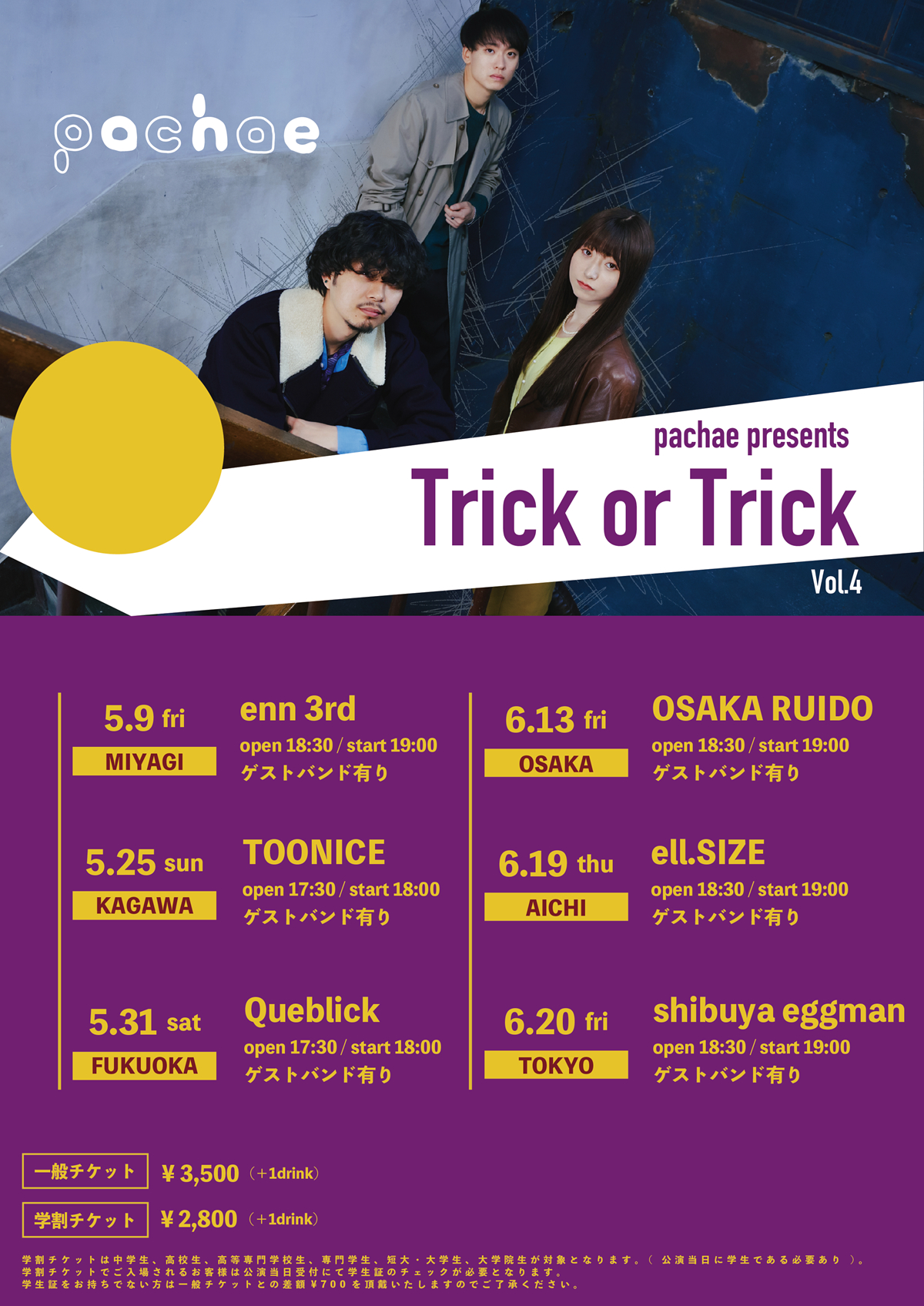 そして、pachaeは2025年初ツアーとなる自主企画イベント『Trick or Trick vol.4』の開催が決定。今回は初となる、仙台と福岡公演も含む6都市6公演の開催となる。ゲストバンドは後日発表とのことなので、続報を待とう。