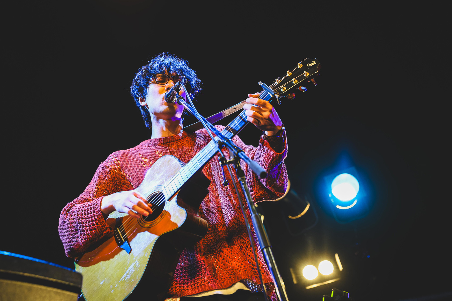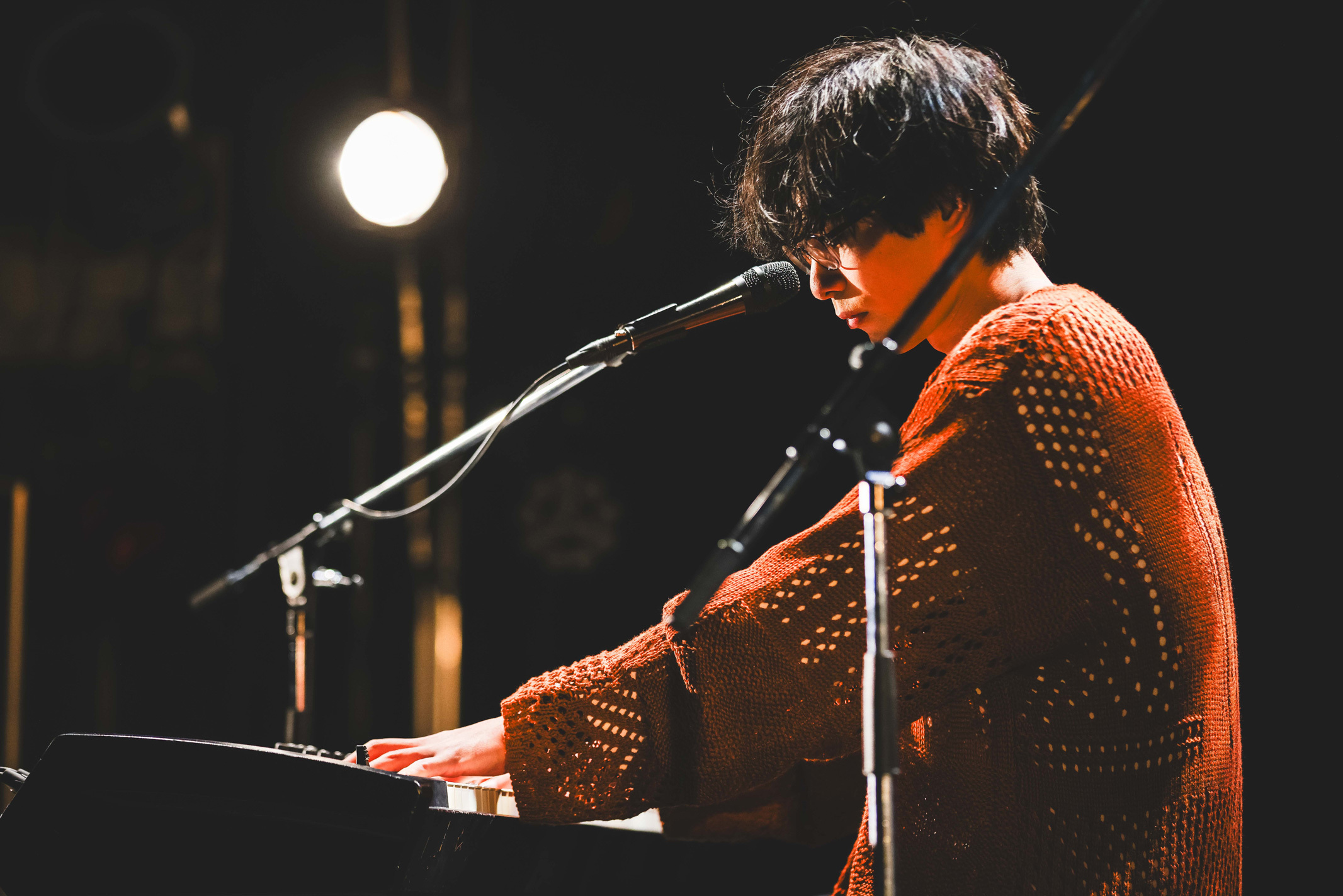 続いては、神戸を拠点に活動するシンガーソングライターの近石涼。キーボードの前に座った近石は、幕が開くと同時に鍵盤を鳴らして「近石涼です! 2日間で僕だけ1人なんですよ。皆が一緒に手拍子で楽しんでくれたら心強いです!」とクラップを求める。しっかりひとつになった会場に弾き語りで響かせたのは「フィナーレ」。張りのある伸びやかな声に感情を乗せて、グッドメロディーを堂々と歌い上げる。