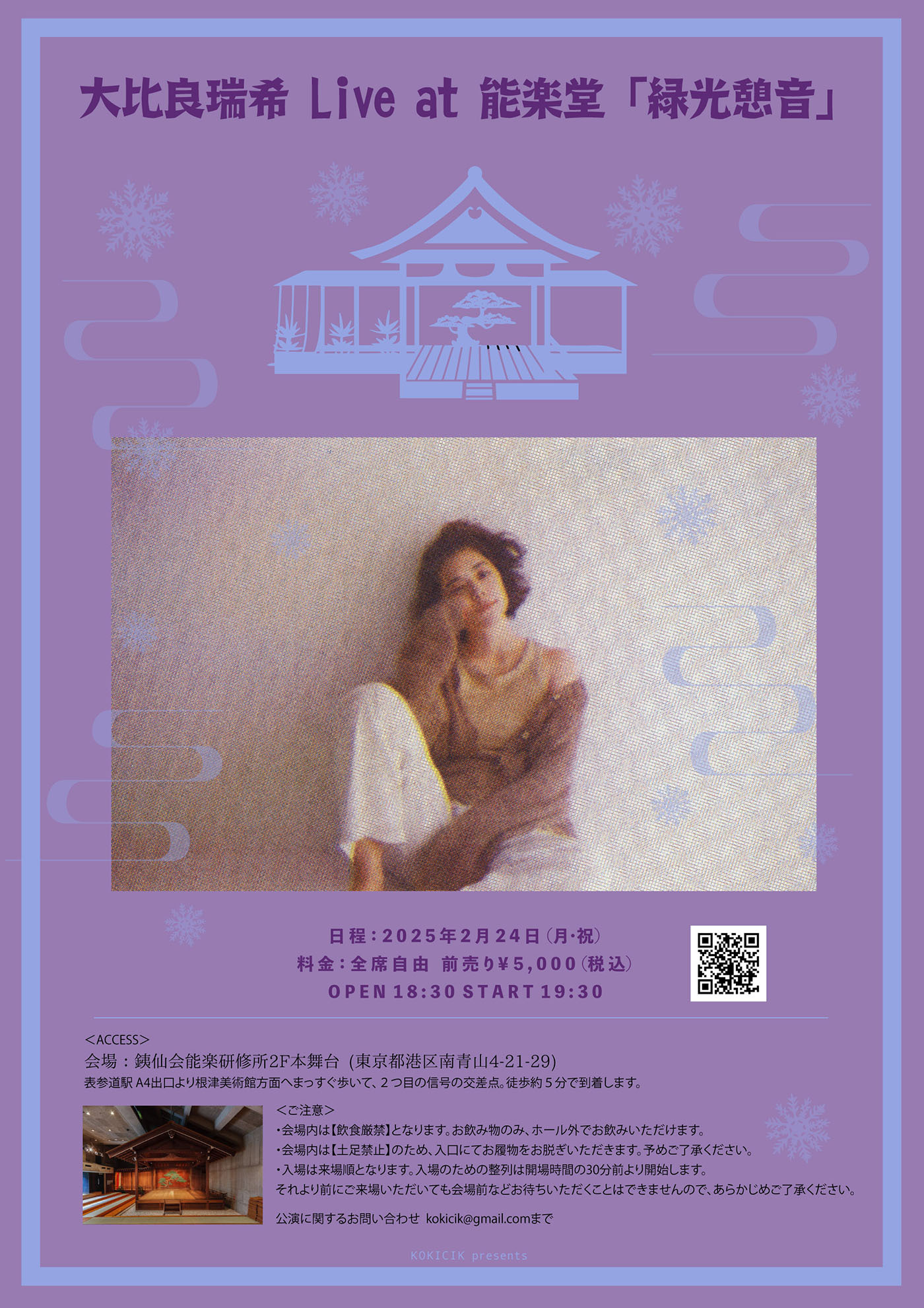 能楽堂で開催する極上のアコースティックライブ『緑光憩音2025冬』に、大比良瑞希が2月24日(月)に出演することが発表された。