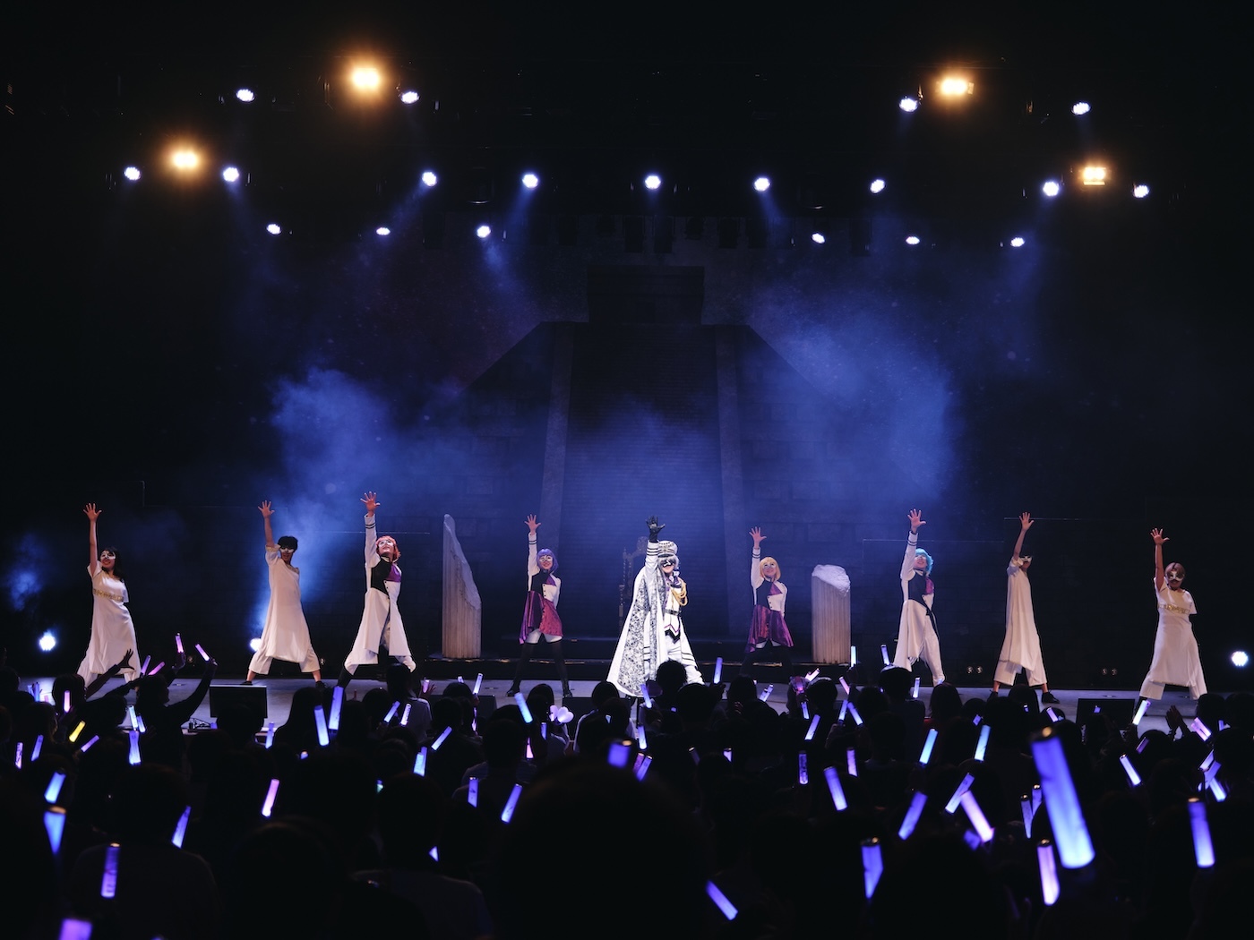 かくして、ここから繰り広げられたのはアルバム『ダバランティス』のメドレー。アンダーバーを取り巻く周囲のキャラクターもこの音楽劇に置いては重要な存在で、アンダーバー王に忠実な家来を演じるしゃむおんをはじめとして、アンダーバーが作り上げた王国ダバランティスの民に扮したneroと+α/あるふぁきゅん、そんなダバランティスと国交を結んだナノ王国の国王役ナノ、敵国アトランティスの国王役のピコ、そしてアトランティス軍の軍隊長を演じるNORISTRYは、各人が持ち前の歌唱力をおおいに発揮しながらストーリーに華を添えてくれていたと言っていい。もともとはアンダーバーも含めて“歌い手”とシングルタスクかのように十把一絡げで呼ばれていた表現者たちが、今や演技までからめた音楽劇で観衆を惹きつけているという事実。きっとその事実が意味するのは、このシーン自体と各人の経てきた変化と成熟だろう。歌ってみたという次元で終わるのではなく、歌ってみることで何を受け手に伝えられるのか、というところまでを把握しているボーカリストがここには見事に揃っていたわけだ。そうした人材を集めることが叶ったのは、ひとえにアンダーバーの人徳によるところも大きいに違いない。メドレーとはいえども、約40分の大ボリュームとなった『ダバランティス』の世界を締めくくったのは、ミュージカル並みのスケール感を持つ「未来のために」。