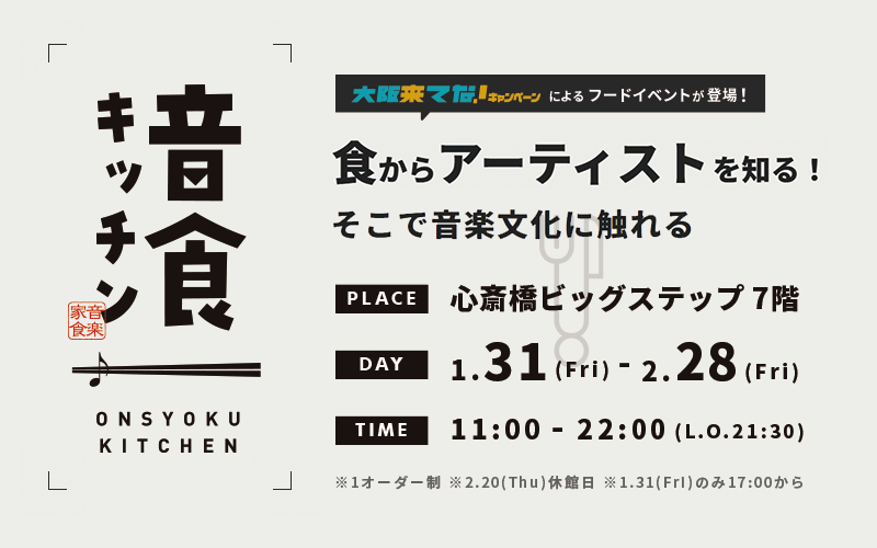 1月31日(金)~2月28日(金)の期間、大阪・ミナミエリアの心斎橋ビッグステップにてアーティストのコラボレストラン『音食キッチン2025』が開催される。