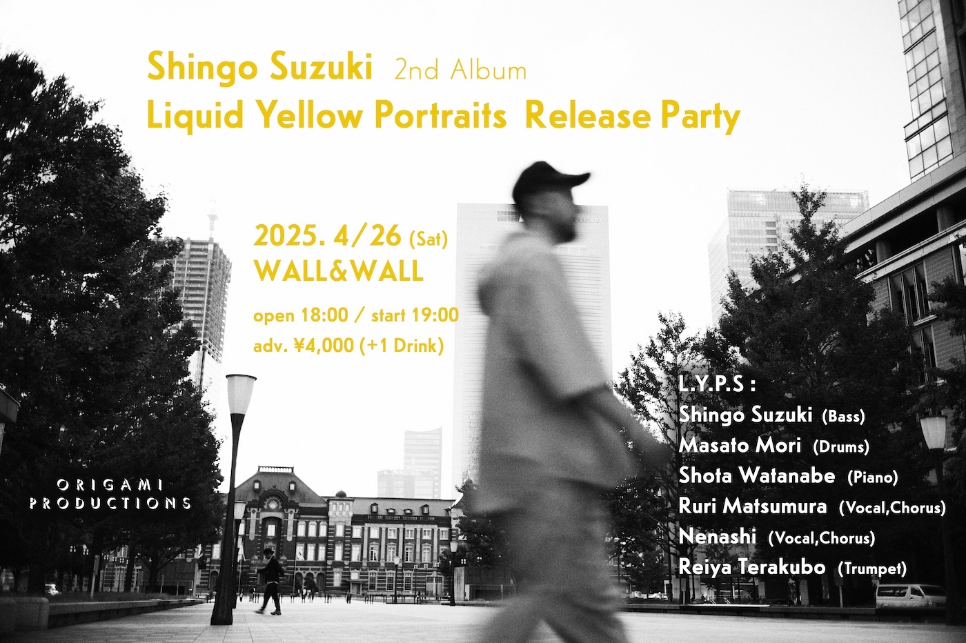 Shingo Suzukiが新たな試みとして、音楽に共鳴したアーティストが入れ替わりながらサウンドメイクしていくソロプロジェクト・Shingo Suzuki L.Y.P.S。4月26日(土)にWALL&WALLで開催される本公演は、アルバム『Liquid Yellow Portraits』のレコーディングの際のオリジナルメンバーが多数集結する貴重なステージとなる。