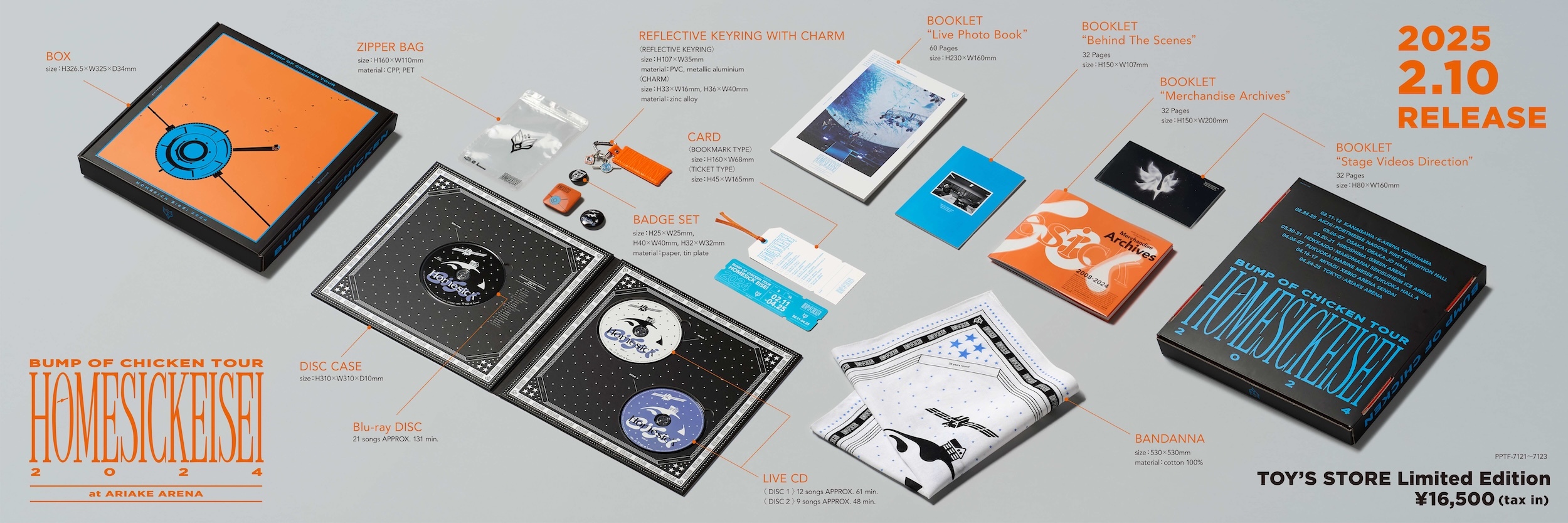 2008年に開催されたツアー『ホームシック衛星』のリバイバル公演として、昨年2月11日からスタートし、15万人を動員・大盛況のうちに幕を閉じたアリーナツアー『BUMP OF CHICKEN TOUR ホームシック衛星2024』。そのツアーファイナルの会場となった有明アリーナ公演のDay1の模様をアンコール含めて完全映像化、さらにライブ音源を収録した CD・グッズ・ブックレットがパッケージされる本作品。