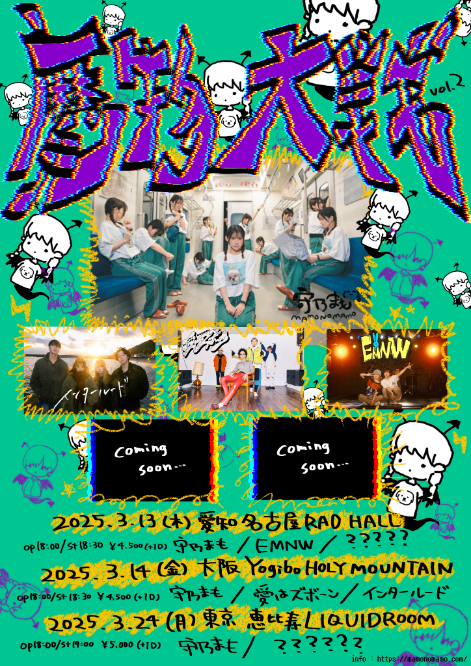 また、同EPのCD発売・配信リリースにあわせ、東名阪ツアー『魔物大戦 vol.2』が開催されることも決定。同ツアーは、3月13日(木)に愛知・名古屋 RAD HALL、3月14日(金)に大阪・Yogibo HOLY MOUNTAIN、3月24日(月)に東京・LIQUIDROOMで開催。