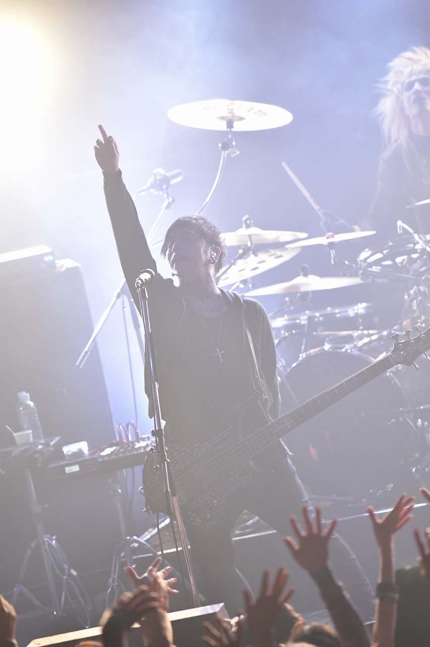アンコールでは、早速2月にリリース予定の新曲「一人じゃないから」を披露。希望を感じさせるポジティブな歌詞とキャッチーなメロディ、パワフルで流れるようなロックサウンドが美しい。フロアも集中力高く、音に聴き入っていた。ka-yuは5弦ベースに持ち替えると「最後は皆さんで思い切り暴れて帰りたいと思います。いいか大阪! しっかり頭振れよ!」と鋭いベースラインを投下して「WARNING ~その先は…破滅!~」(DAMIJAW)を轟音全力プレイ。和やかなエンディングを経て、ライブは大団円で終了した……と思いきや、まだ足りないとばかりにダブルアンコールを求めるオーディエンス。再登場した4人は「MESS」(DAMIJAW)で最後にもうひと暴れ! 当然フロアの熱も再燃し、この日1番のヘドバンの嵐が炸裂した。