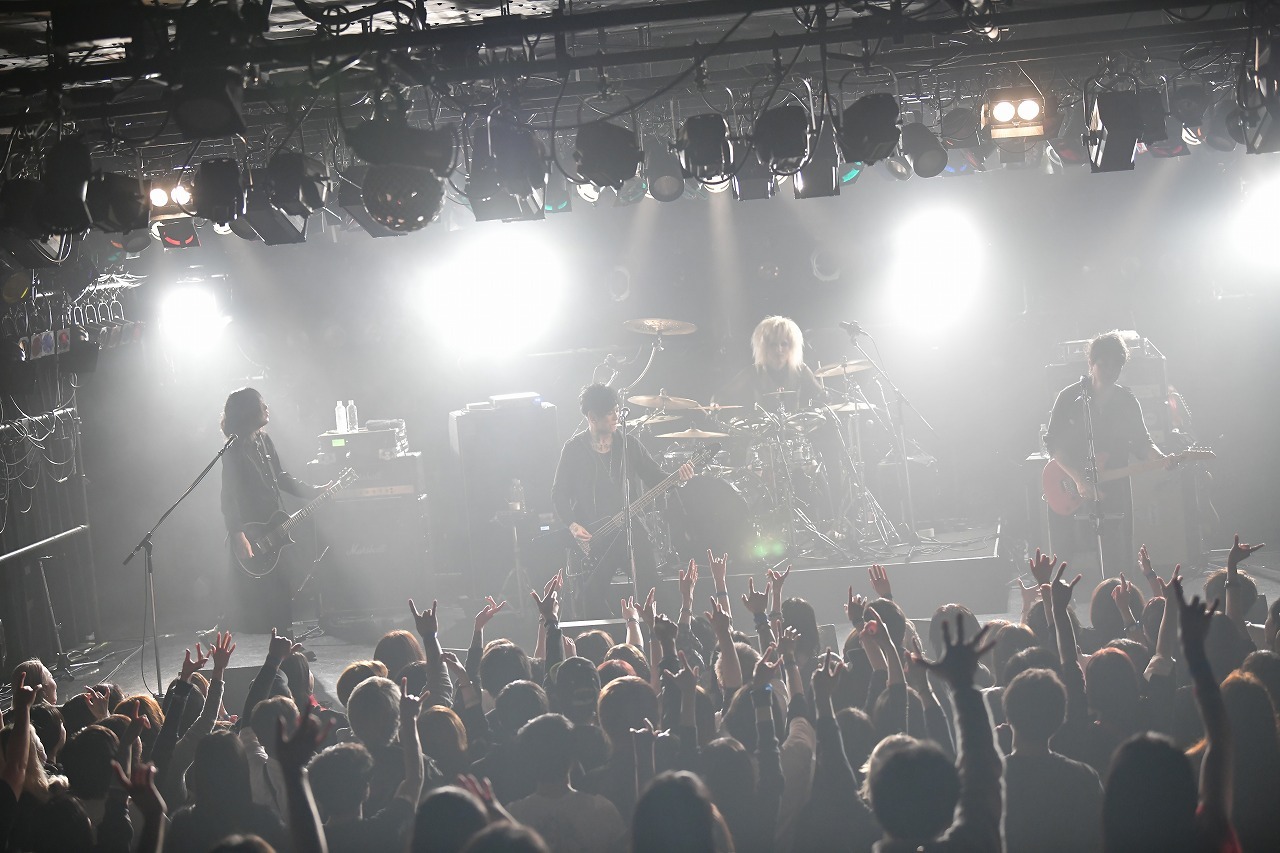 すぐさま起こったアンコールを求める声に応えてステージにカムバックした4人。ここで、2~5月まで4ヵ月連続リリースすること、5月にHEAVEN’S ROCK さいたま新都心、6月に新横浜 NEW SIDE BEACH!!、7月にOSAKA MUSE、8月に新宿LOFTと、4ヵ月連続でライブを行うことをアナウンス。横浜公演にはJanne Da Arcの元ドラマー・shujiが参加するとあって、フロアは歓喜に湧き上がった。