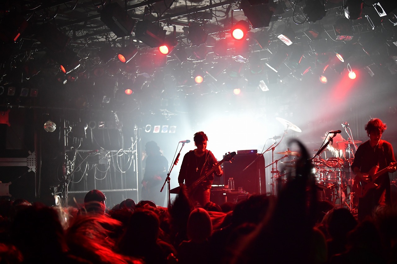SEが流れ、お馴染みかつ最強のサポートメンバーである原田喧太(Gt)、Kyrie(Gt)、CHARGEEEEEE…(Dr)に続いてka-yu(Ba)が登場。待ってましたとばかりにフロアからはka-yuの名前を呼ぶ声が飛び交い、ka-yuは嬉しそうな表情を浮かべる。