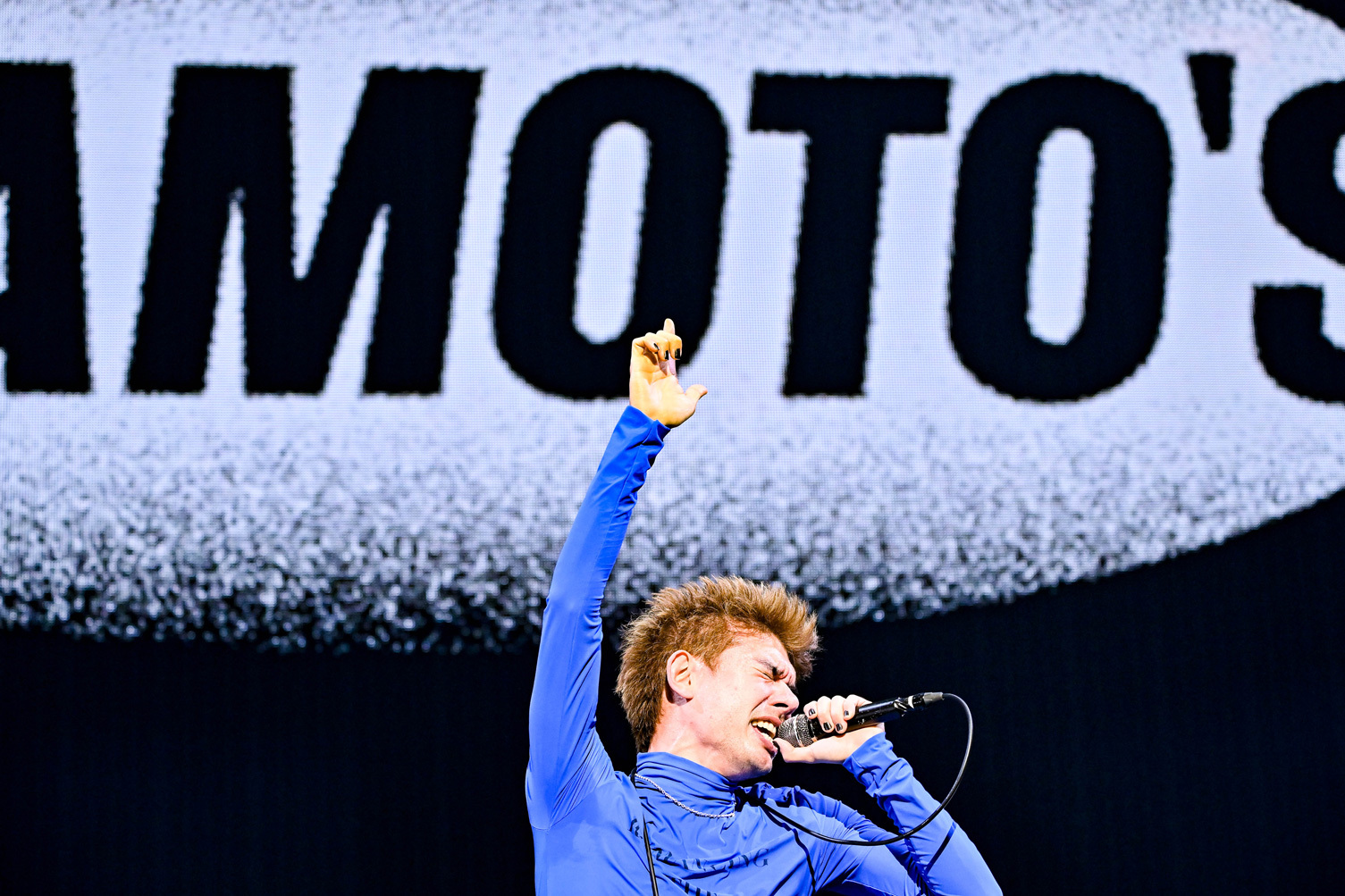 「せっかくこの出順にしていただいたので、ここからエナジー全開で飛ばしていこうと思うんですけど、皆さんついてこれますか? ぶっ飛ばそうぜ大阪!」と、巨大なステージで所狭しとアジテートするオカモトショウが口火を切った後半戦は、「この愛に敵うもんはない」を皮切りに、オカモトレイジ(Dr)のすさまじいドラミングが炸裂した「Dance With You」、真っ赤な閃光の中で飛び跳ねまくった「BROTHER」と畳み掛ける!