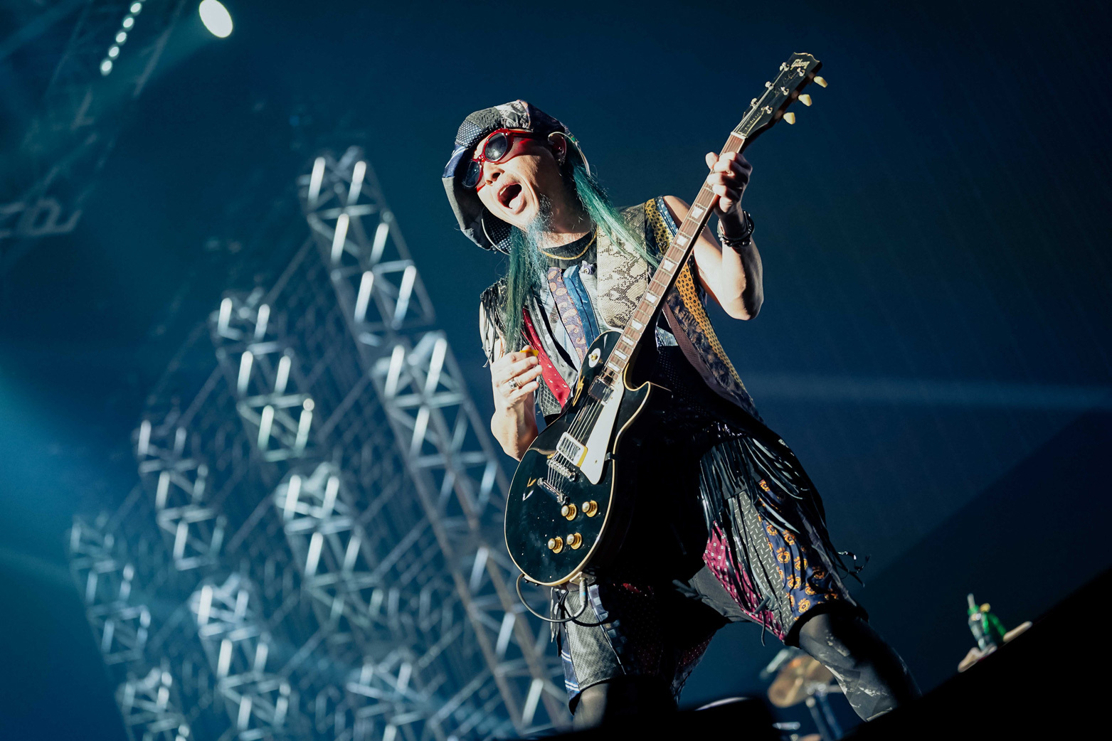 「THE YELLOW MONKEY、いいバンドなんです(笑)。THE YELLOW MONKEYもこういうイベントに出してもらいたいよね。一回も出してもらったことがないよね? 嫌いなんですか?(笑)。その日を夢見て頑張りたいと思います」と、終盤には何ともうれしい逆オファーも!? そこにいる誰もが実現する日を楽しみにするなか、朗々と「FLOWER」を放った吉井和哉、美しき。