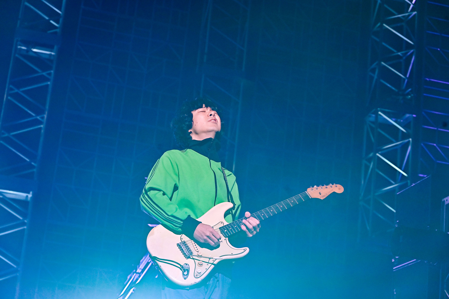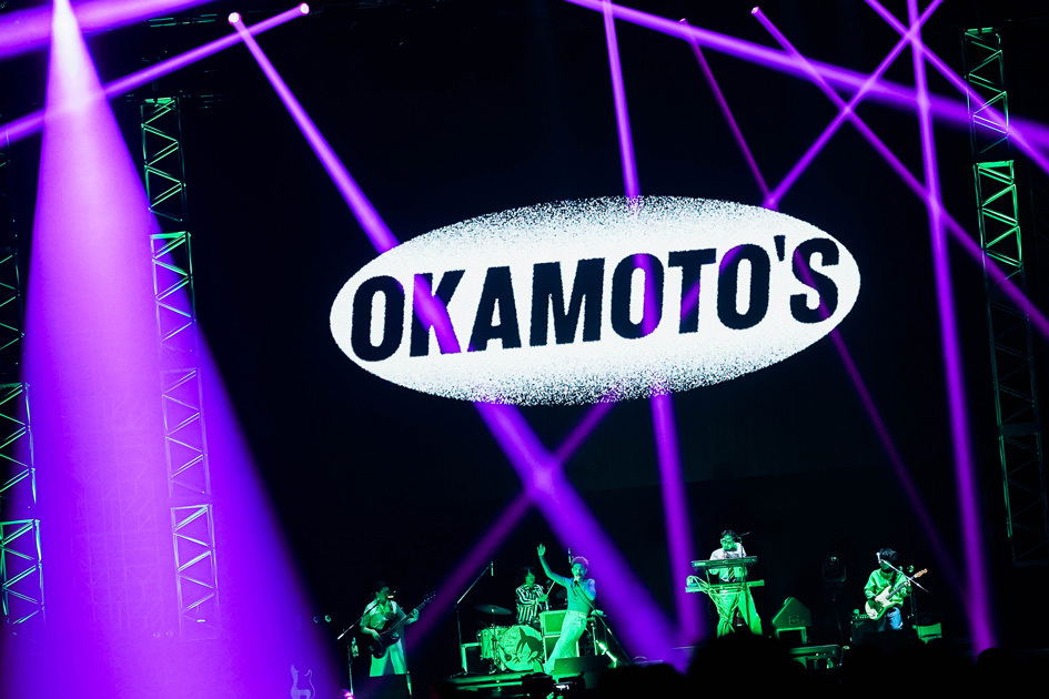 イギー・ポップの「ザ・パッセンジャー」のSEをかき分ける、オカモトコウキ(Gt)のカッティングがシビれる「90’S TOKYO BOYS」でクールに幕を開けたOKAMOTO’S。アリーナすら軽々グルーヴさせる重く分厚いバンドサウンドを轟かせ、「プラムチャウダー20周年おめでとうございます、出順がおかしいぞー(笑)。今日もこんな素晴らしい日に入れていただいて、後輩ですけど頑張ります」とはハマ・オカモト(Ba)。