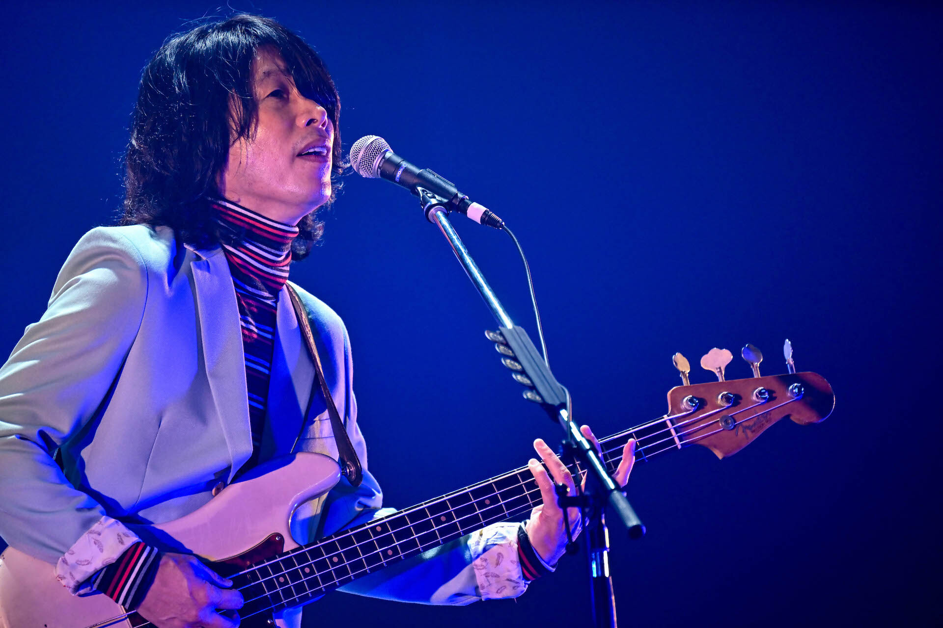 その後も、現状の最新シングル「美しい鰭」からキャリアの初期曲「晴れの日はプカプカプー」までを奏で、スピッツの歴代のアーカイブから選ばれたレンジの広いセットリストにも触れる。「今聴いてもらったのはスピッツのインディーズ時代の曲で、音源にもなっていないんですけど、初心を思い出して演奏しました。今日、スピッツを初めてご覧になる方もいらっしゃいますよね? 「あの曲やらねーな」という気持ちになっている方もいらっしゃるかもしれないですけど(笑)、次はそんなあなたが考えるあの曲かもしれない……!」という含みのある草野のフリから、名曲「チェリー」~デビュー曲「ヒバリのこころ」へ! 先ほど草野は謙遜していたが、代表曲からレア曲までが入り乱れ、初見からファンまでを喜ばせるメニューでプラムチャウダーのアニバーサリーに花を添え、躍動感たっぷりの「バニーガール」~力強く思いを鳴らした「夢追い虫」でフィナーレを迎えた。