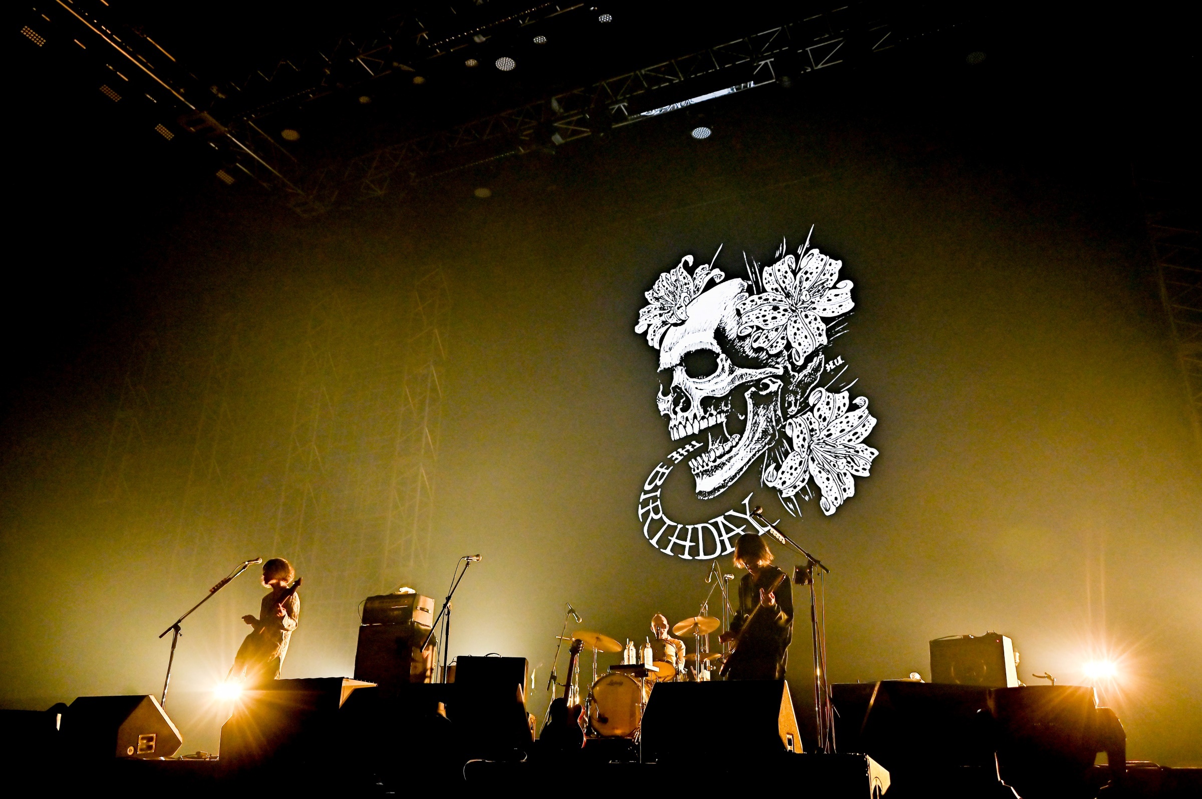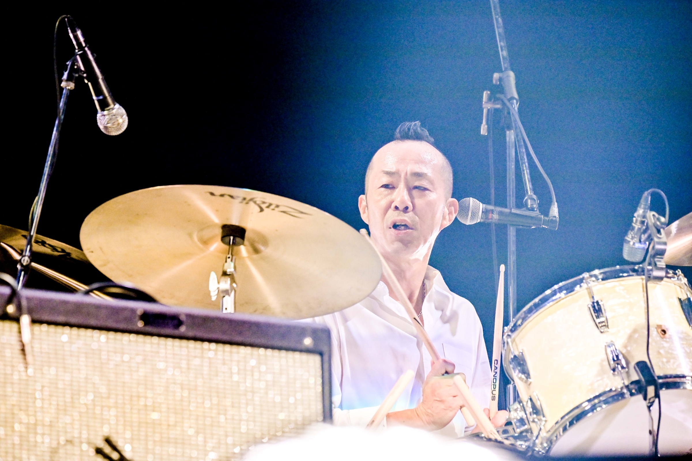 お決まりのザ・クレスツ「シックスティーン・キャンドルズ」のSEを切り裂く、フジイケンジ(Gt)のひずんだギター。それに合流するクハラカズユキ(Dr)とヒライハルキ(Ba)のド迫力のボトム……ロックバンドの問答無用のカッコ良さを、ド頭の「I SAW THE LIGHT」からこれでもかと見せつけてくれたのが、The Birthdayだ。