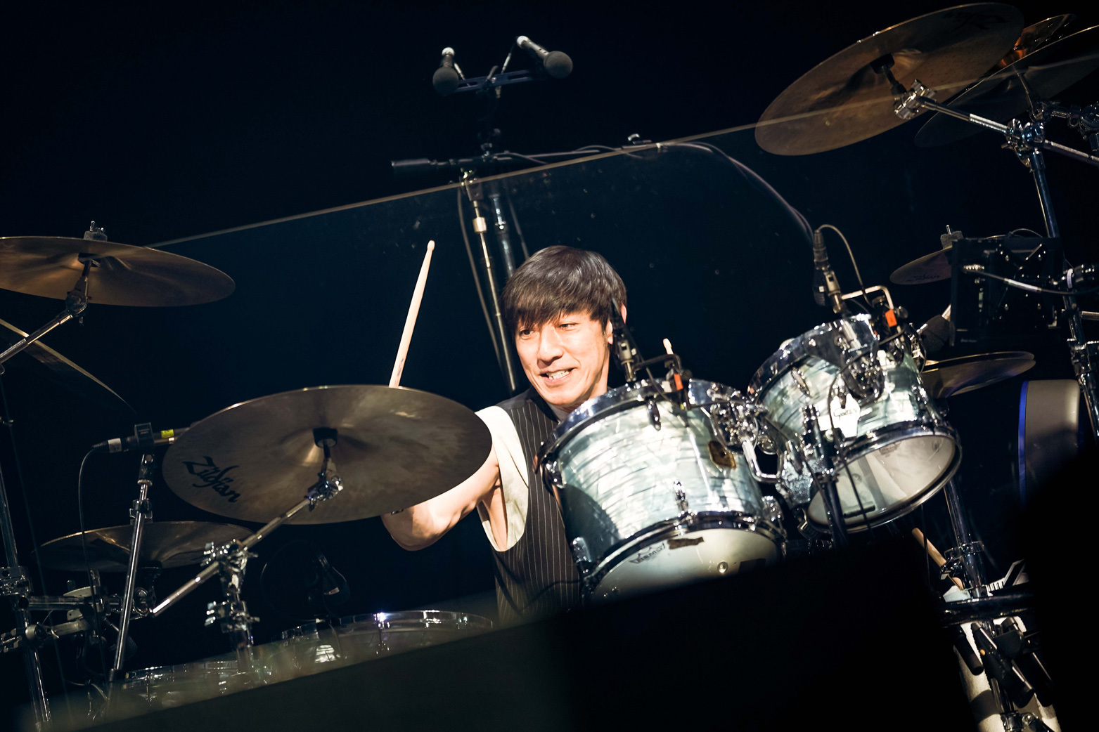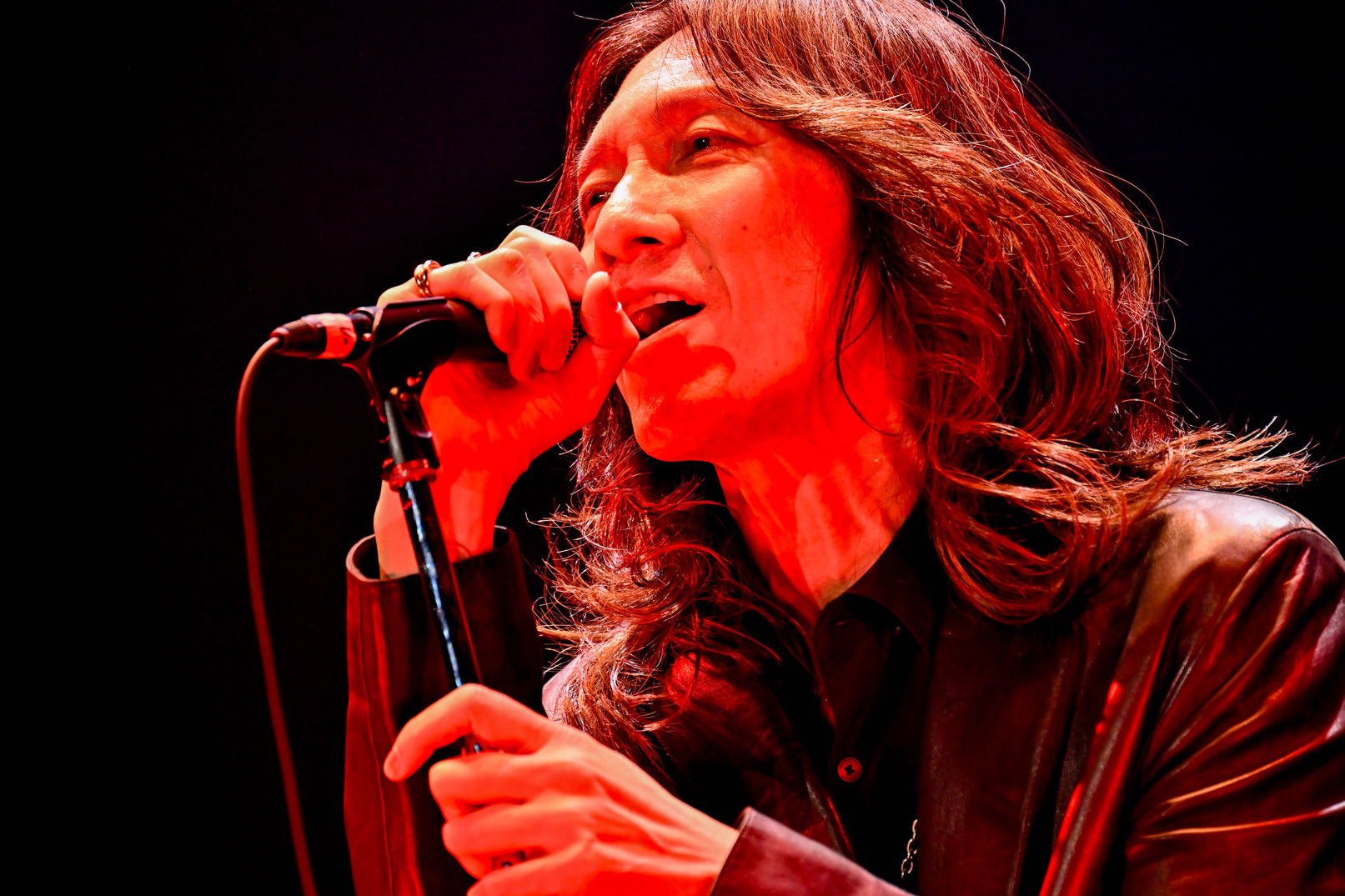 「また吉井です(笑)。今はTHE YELLOW MONKEYのツアー中なんですけど、主催者の梅木さんのお祝いということで、どうしてもソロでやってほしいと。ただ、急にはサポートメンバーが集まらなかったのでミニマムにお届けしたいと思います」と語った吉井和哉は、ギターとピアノに加えて同期を駆使した小編成で「VS」を演奏。発言通り、現在はバンド本体のツアーの真っただ中というのもあり、なかなか見られない貴重なソロのパフォーマンスで、「点描のしくみ」でも艶やかなボーカルで魅了していく。