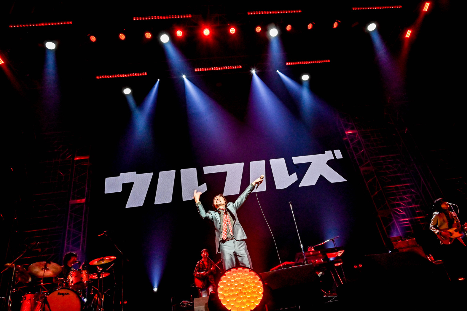リラックスした佇まいで歌う「笑えれば」が、時代を超えてこんなにも胸に染みるのは、ウルフルズのメッセージが持つ普遍性の証明でもある。こんなにも幸せな空間が今、世界中のどこにあるだろうと思わせるウルフルズの包容力には感心するしかない。しかもやる曲やる曲知らない曲がない。さらに、翌日には真心ブラザーズとしての出番が控えるサポートギターの桜井秀俊が、あのイントロを奏でれば場内の熱気はまたもピークに! 国民的アンセム、いや関西の国歌「ガッツだぜ!!」で大いに盛り上がる。
