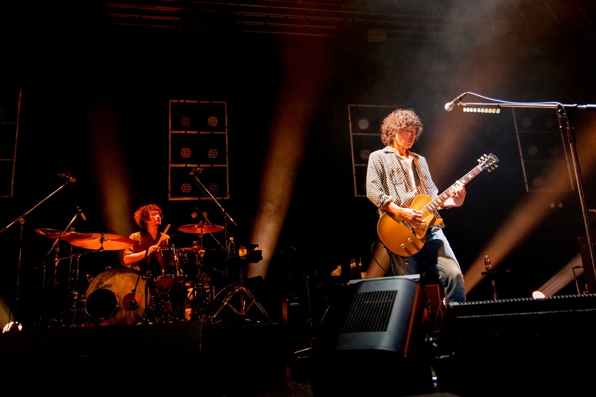ジャジーに聴かせた「寒い冬だから」では、会場近くの羽田空港にちなんだセリフを入れて笑わせたりと、リラックスした歌で楽しませる。「バンドでやるのは久々」とタイトルを告げた客席が「おおっ」とどよめいたのは「メトロに乗って」。真っすぐなフォークソングに乗せた斉藤の歌声が郷愁を誘い、心に沁みる。真壁と隅倉がいったん下がり、ドラムの玉田と2人で聴かせた「レノンの夢も」では、ジョン・レノンを想起させるギブソンJ-160Eを鳴らしながら無骨に歌い上げる。そこに隅倉のベースが加わって8ビートのシンプルなロックンロール「通りに立てば」、吠えるようなギターを鳴らして始まったワイルドな「FIRE DOG」、ドライブ感たっぷりなガレージロック「マディウォーター」と、3人編成でソリッドなサウンドを聴かせた。