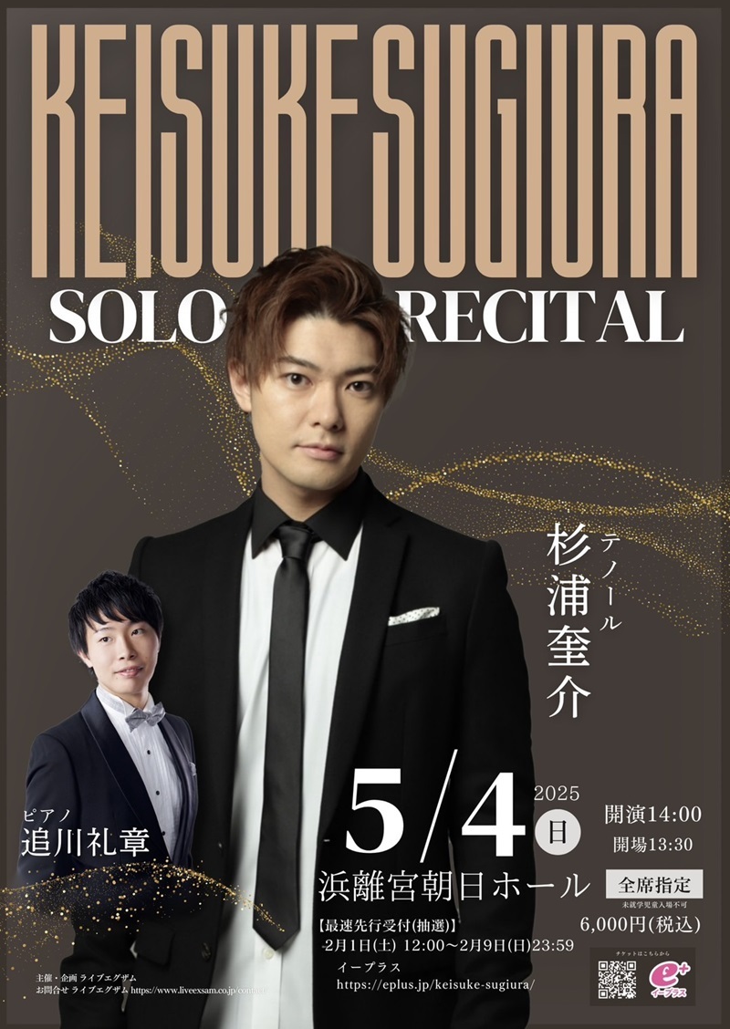 2月のオーチャードを経て、どんなソロ・コンサートを杉浦が聴かせてくれるのか楽しみであるが、高島・鳥尾に続きソールドアウト必至のコンサートだけに、スタートしたイープラスでの最速先行販売のチャンスを逃さないようにしてほしい。