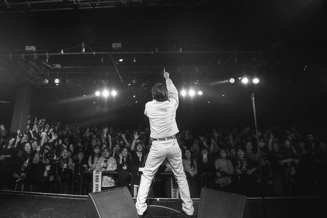 披露するのはもちろん、以前、J-REXXXとAKLOがそれぞれにフィーチャリングゲストとして参加した曲だ。J-REXXXがラップを加えた「DESPERADO」は哀愁が入り混じるラテンポップナンバー。J-REXXX、LEO、そしてMOMONADYの3人がステージを自由に動きながら声を上げ、観客をバウンスさせたアップテンポの「FIGHT DUB CLUB」では観客がタオルを振り回しながらシンガンロング。そして、クライマックスという言葉がふさわしい熱狂の中、本編を締めくくったのは、AKLOのラップとLEOのソウルフルな歌声が交わる「LOST IN PARADISE」。アーバンな魅力もファンクナンバーは、軽快なギターのカッティングに歪ませた音色で加えるオブリも聴きどころだった。