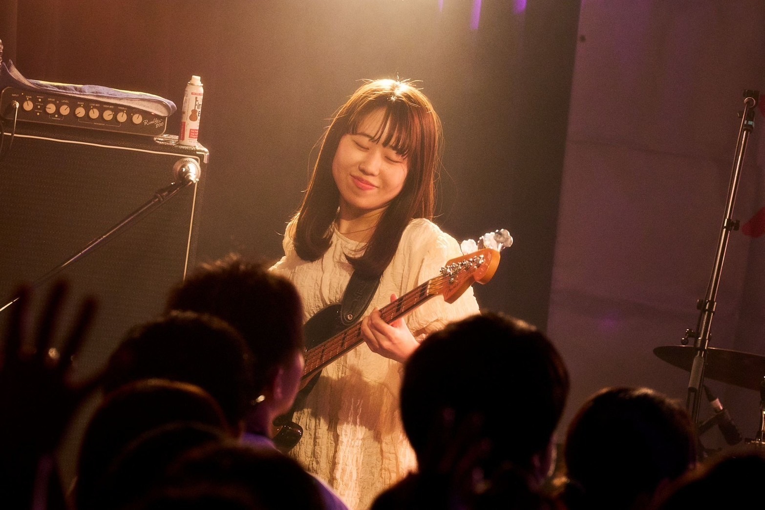 シックな曲調を、トラメガを使ったボーカルを含め、歪んだ音像に落とし込んだパンクなショートチューン「ピンク」。ロックンロールのニュアンスが滲むヤユヨのポップスにファンキーな魅力を加えた「チョコミンツ」。ディレイを掛けたギターリフをはじめ、リバービーなサウンドメイキングでバラードに差を付けた「このままじゃ」。キーボードとラップに加え、ベースのスラップ奏法も導入したノスタルジックなバラードの「POOL」。この4曲を聴いただけでも彼女達がどれだけ進化することに意識的に曲作りに取り組んできたかがわかるだろう。「めっちゃ濃厚なバンド生活」とリコが6年間を振り返ったのも頷ける。