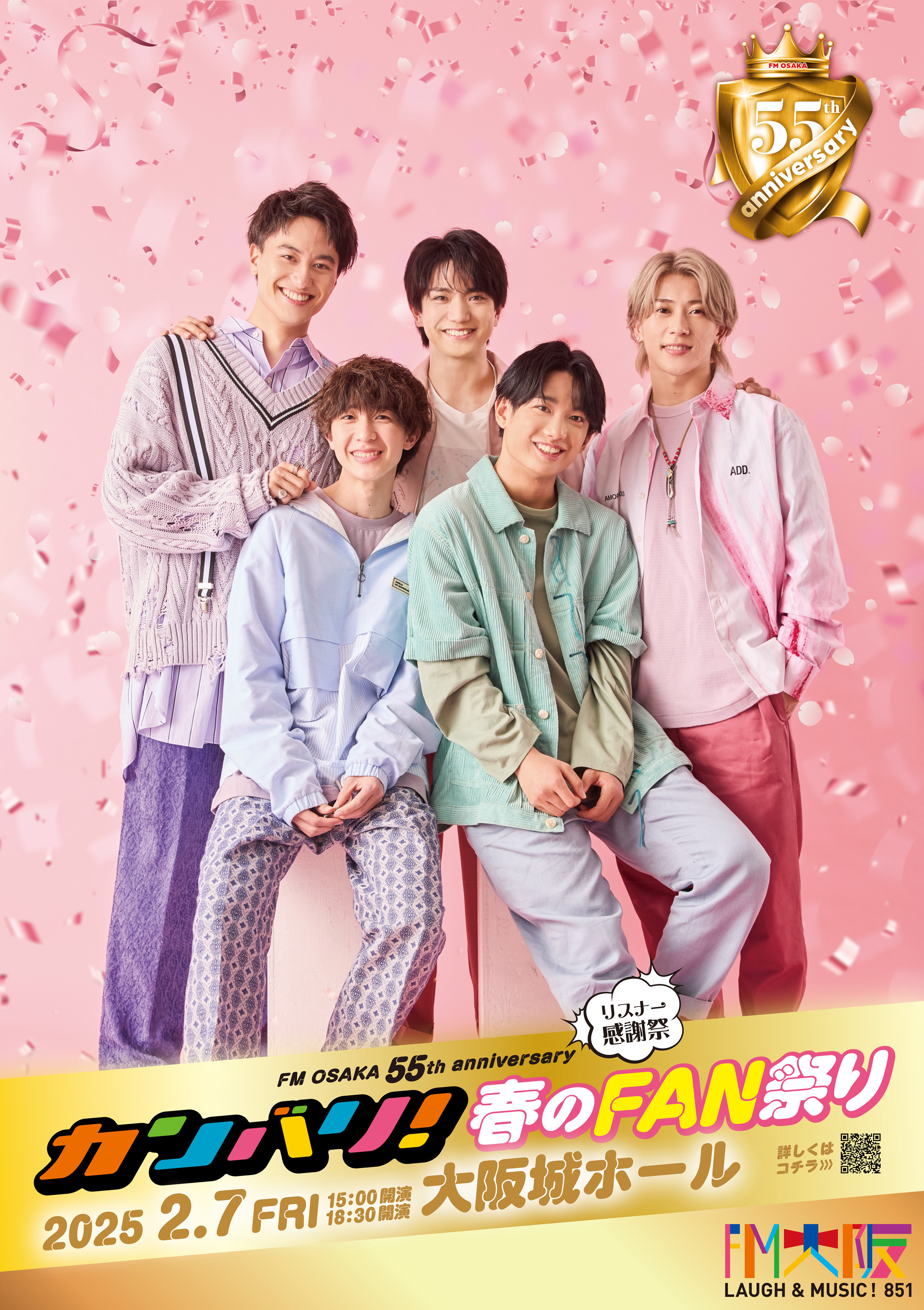 FM大阪の人気番組『カンバリ!』の初の公開収録『FM OSAKA 55th anniversary リスナー感謝祭 ~カンバリ!春のFAN祭~』が2025年2月7日(金)、大阪城ホールで開催される。2018年にスタートした同番組は現在、Aぇ! groupと関西ジュニア内グループ・AmBitiousのメンバーが週替わりでDJを担当。今回のイベントはFM大阪の開局55周年を記念して行われ、さらにAぇ! groupは3月末の放送で番組卒業となる。そこで今回は番組に出演しているAぇ! groupの正門良規、末澤誠也、小島健、AmBitiousの真弓孟之、永岡蓮王に『カンバリ!』への思いについて語ってもらった。
