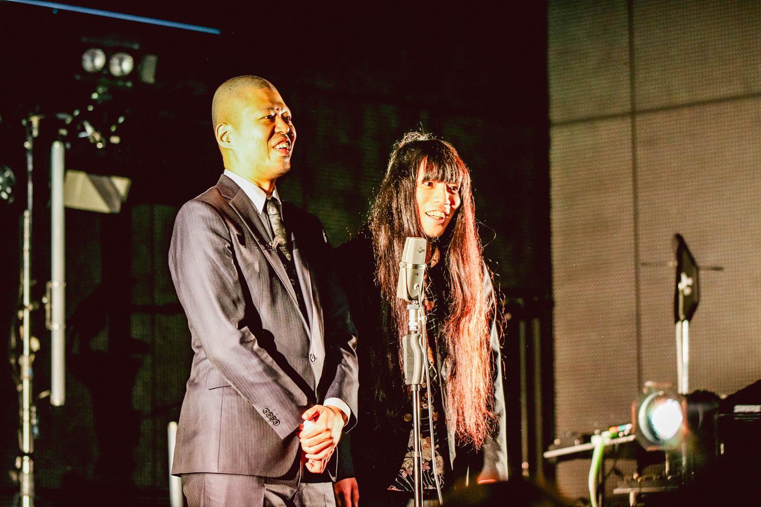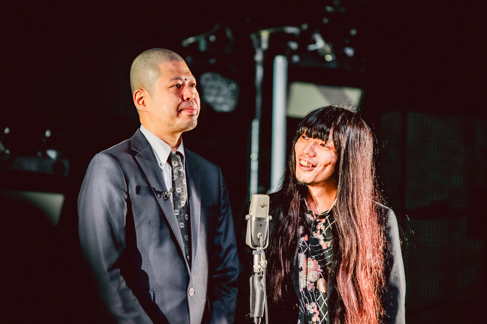 夕方16時55分・UZU HALL。四星球。いよいよ大トリ。accobinを観終えて、どうしても彼女の言葉を同級生であるふたりには伝えたいという勝手な使命感にかられて舞台袖へと急ぐ。本番前の準備で忙しい康雄に早口で泣きそうになりながら全貌を伝える。康雄は凄く感動しながら、「嬉しいですね……」と呟く。そして悪ガキの顔をして、「今日もお父さん出してやろうと思っていたんですよ!」と笑った。U太も「僕らの前では普段絶対に言わないのに」と照れ笑いしながら、「あそこを任せられるのはあっこしかいないんで」とも話してくれた。とんでもないバトンが本当に繋がった。