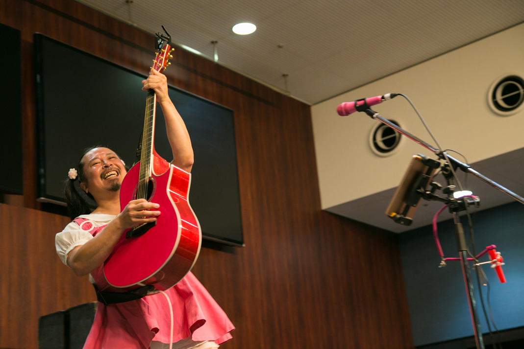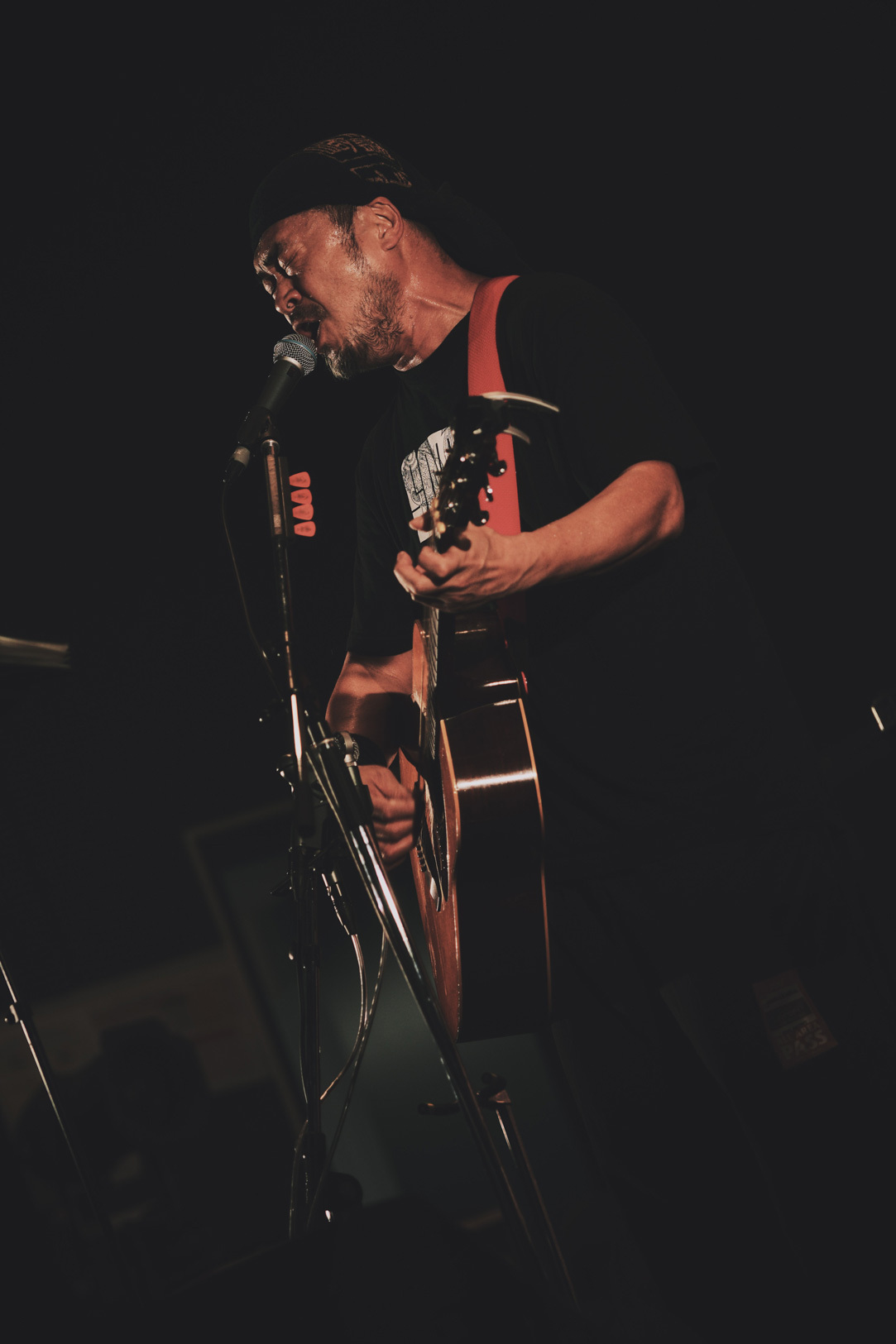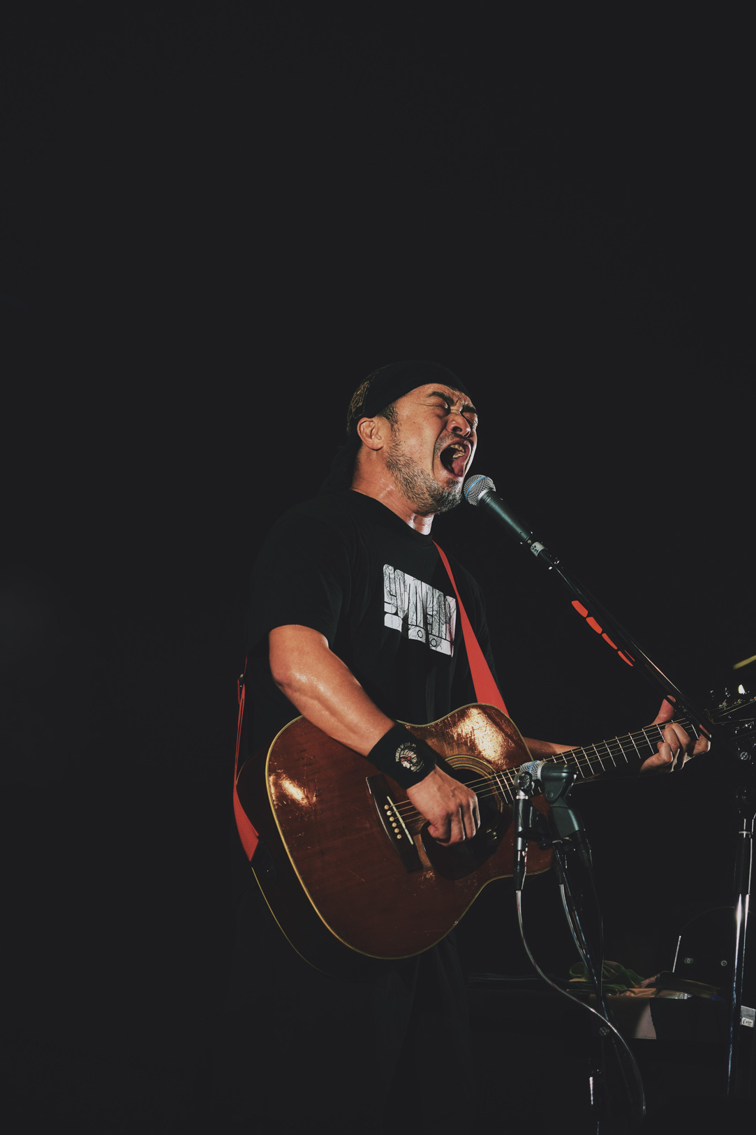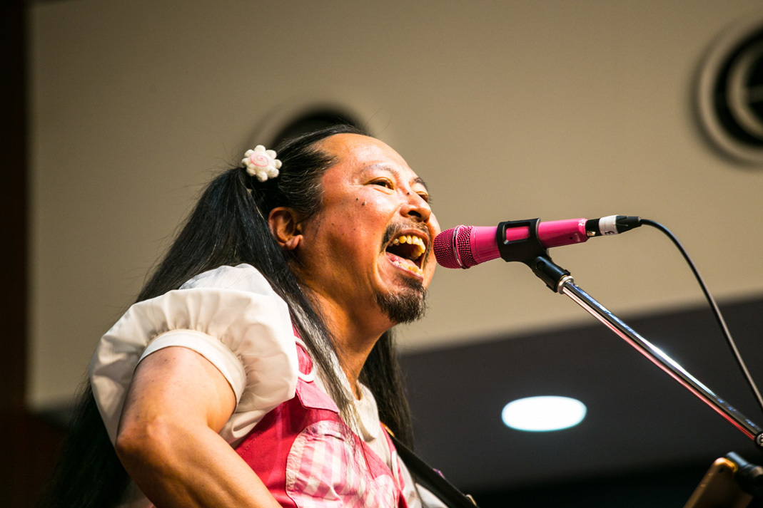 昼14時25分・UZU HALL。竹原ピストル。リハから本人が出てきて本番のような本意気で「浅草キッド」・「春夏秋冬」など大名曲カバーを惜しみもなく披露する。「人力BGMだと思って下さい」と本人は控えめに言うが、そんなわけはなく、聴く側はリハから本気の歌が聴けることに感激している。本番が始まってからも「やかましく失礼しました」と丁寧・謙虚さは変わらないが、アコギ1本弾き語りのピストルを観るために、お昼時で休憩していたはずの観客で見る見る埋まっていく。剥き出し曝け出しの姿勢ながらも、やはり「手拍子心強かったです」なんていう丁寧・謙虚さも変わらない。「今宵もかろうじて歌い切る」という曲名も信じられないくらいに丁寧謙虚だし、だからこそ信頼されるのだろう。憧れの吉田拓郎先輩の歌を歌ったりしながら、野狐禅を組んでいた頃に四星球と出逢ったことも話す。そして本人いわく青臭いという野狐禅時代の「ならば友よ」へ。「Amazing Grace」のメロディーに乗せて自分の想いを歌うなど博愛さを感じさせながらも、この日会場入りする時にスタッフから他の出演者に間違われた事を笑って話しながらも、「屈辱的でしたね! 見てろよ! あの野郎!」と冗談交じりとはいえ反骨心も未だに感じさせてくれるから、ずっと支持されるのであろう。