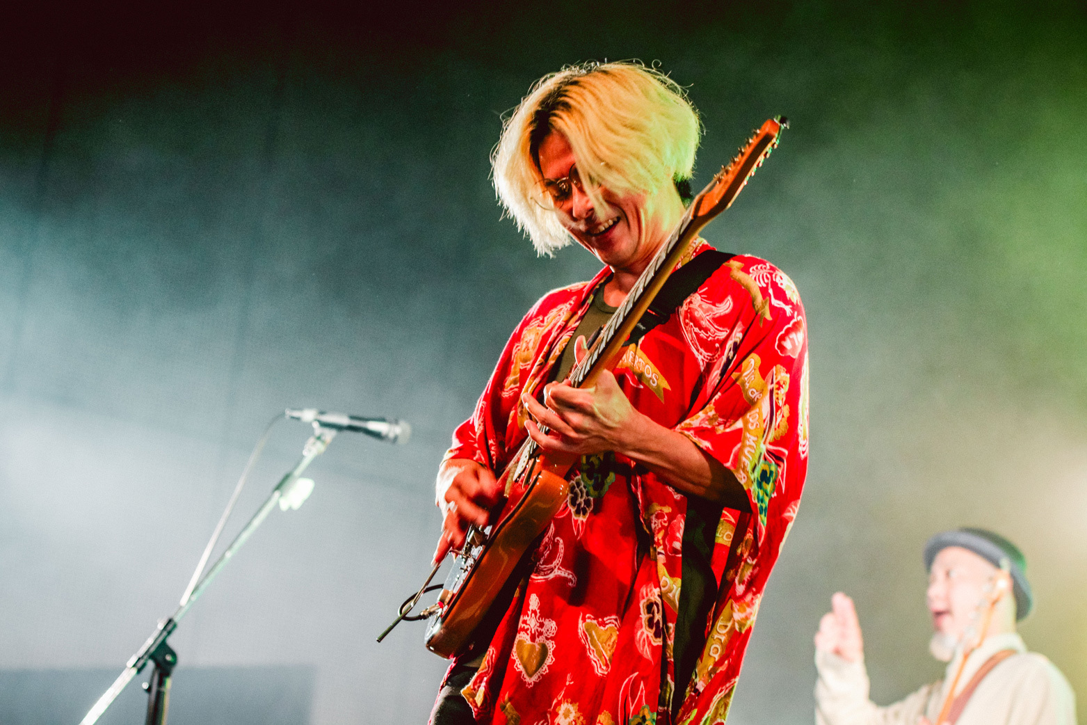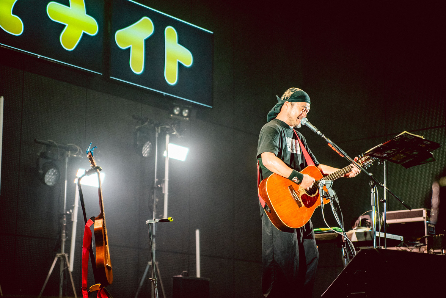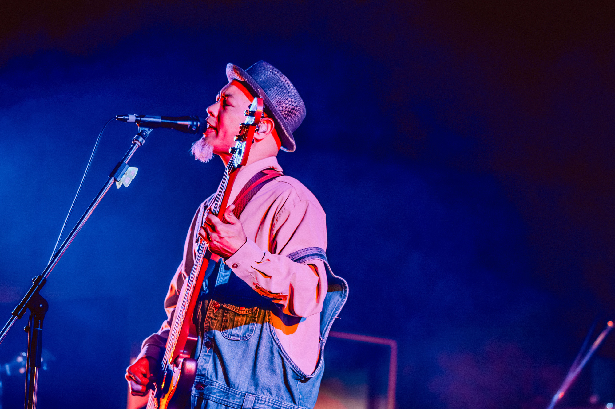 昼13時15分・UZU HALL。かりゆし58。ボーカルの前川真悟は昨年もなるちゃんホールに弾き語りで出演していたが、バンドとしてUZU HALL出演は初となる。前川は1曲目終わり、全然関係ない話ですけどと言った上で、今日が自分の姉の誕生日だと明かす。朝に母親から前川の方に間違えて「誕生日おめでとう!」連絡が入ったと言い、その流れから人気曲「アンマー」へ。母への想いが歌われた楽曲だが、観客みんなが耳を傾けていた。「手と手」では観客みんな手拍子をするし、かりゆしはみんなを温かい心にして巻き込むことに長けている。「もうすぐ今日が終わる」という歌詞が印象的な「オワリはじまり」で終わったのも素敵だった。