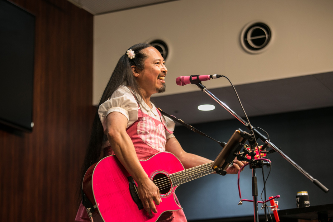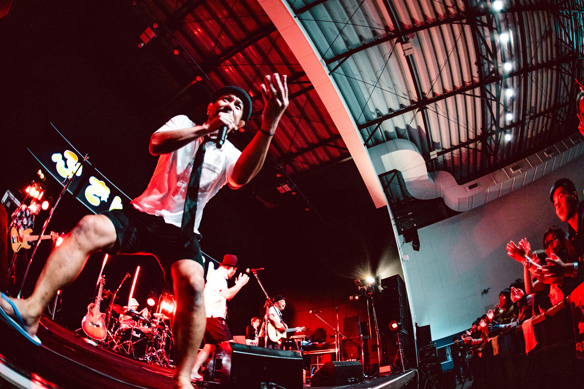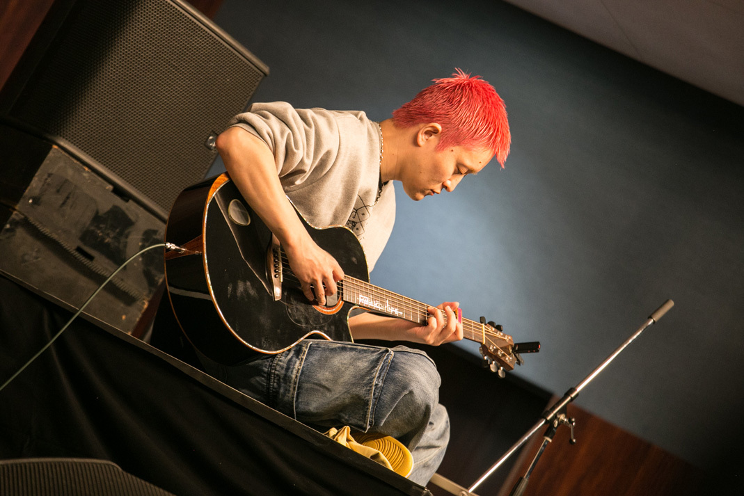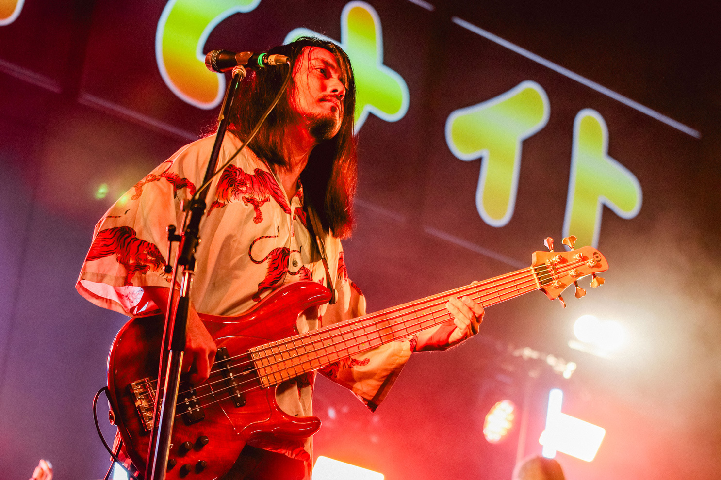 昼13時15分・UZU HALL。かりゆし58。ボーカルの前川真悟は昨年もなるちゃんホールに弾き語りで出演していたが、バンドとしてUZU HALL出演は初となる。前川は1曲目終わり、全然関係ない話ですけどと言った上で、今日が自分の姉の誕生日だと明かす。朝に母親から前川の方に間違えて「誕生日おめでとう!」連絡が入ったと言い、その流れから人気曲「アンマー」へ。母への想いが歌われた楽曲だが、観客みんなが耳を傾けていた。「手と手」では観客みんな手拍子をするし、かりゆしはみんなを温かい心にして巻き込むことに長けている。「もうすぐ今日が終わる」という歌詞が印象的な「オワリはじまり」で終わったのも素敵だった。