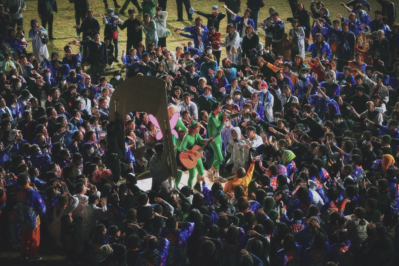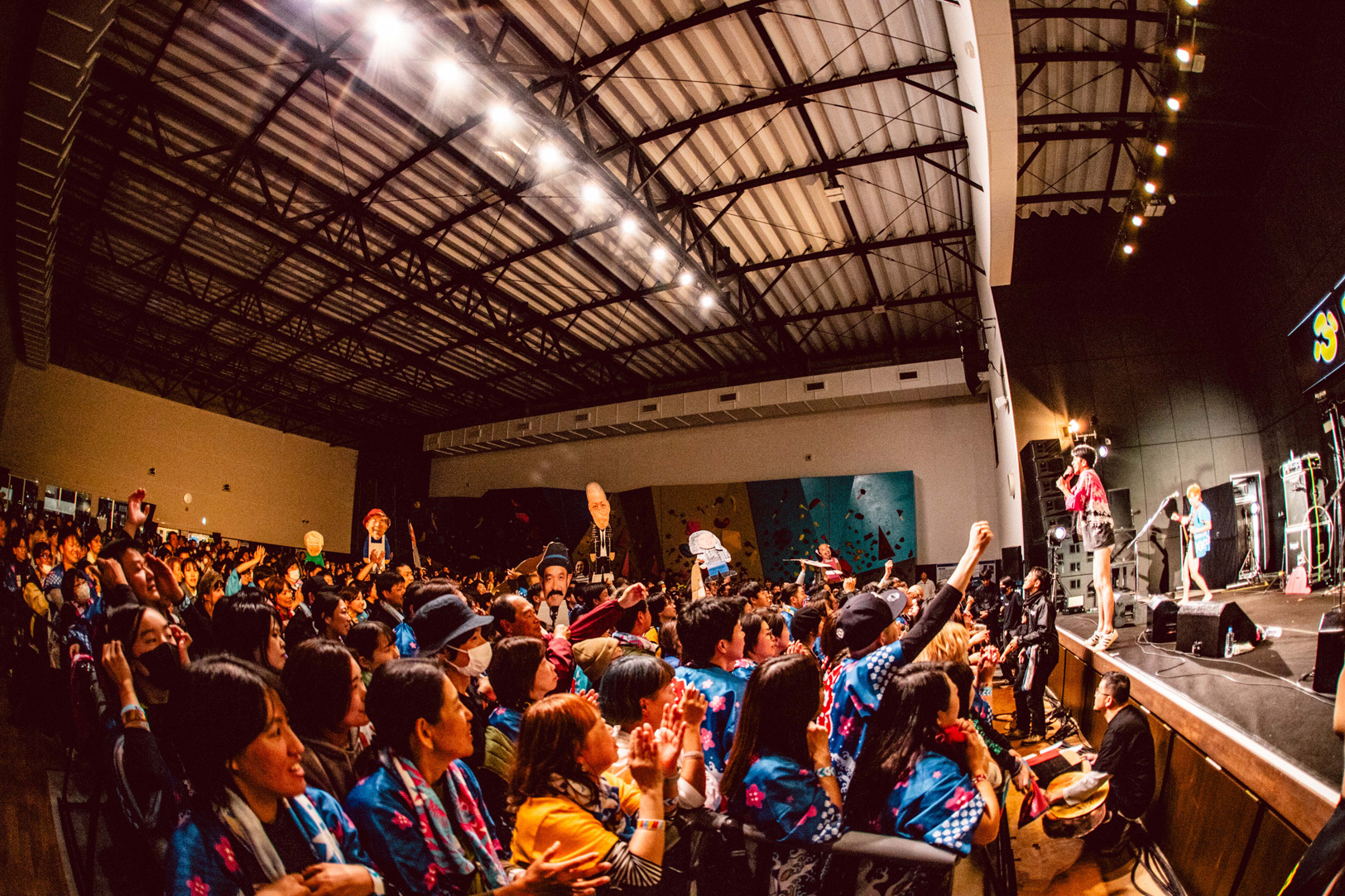 康雄が一度外へ出たにも関わらず、思わず「さっぶ!」と一度UZU HALL内へと戻った姿には笑ってしまった。外へ出たらマイクの電源も届かないわけで、生歌のアコースティックでバンドは演奏する。その原始的な音楽の鳴りを、約600人の観客が何重にも輪になって見守っている。温かい屋内で電源を通して音を鳴らせばいいだけのことなのだが、そんなアホでバカバカしいことを一生懸命本気でやり続ける四星球に、我々は笑わされて時には泣けてしまう。UZU HALLからはチャイムが鳴っている。あおとがよろしいようで。1日目が終わった。