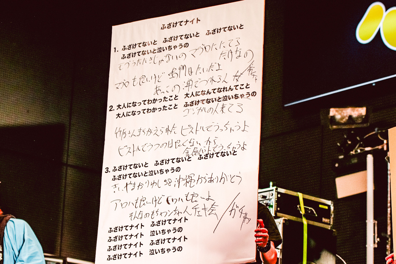 アンコールでは、この日だけの「ふざけてナイト」の歌詞を作るべく、観客から想い出を募っていく。「鮪もいいけど鳴門は鯛なんだ」や「あっこの海で」などなど康雄の即興歌詞作りのセンスはずば抜け過ぎていて、取材に来ていたスポーツ紙記者は「天才だ……」と舌を巻いていた。続く「コミックバンド」でも募った歌詞を使っていたが、その全てを使い切って無駄にしないようには感嘆してしまう。