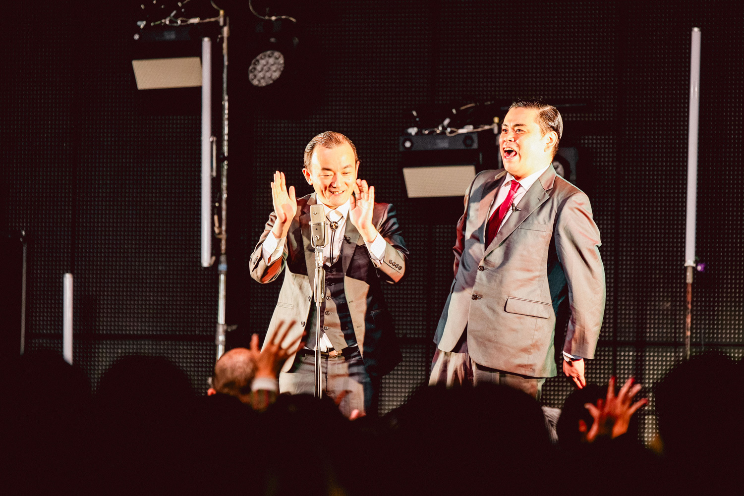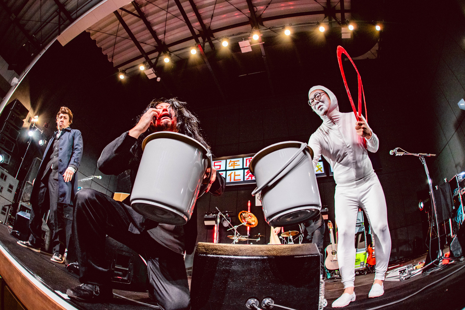 最初に影アナで「おもしろいことをしたいんですけど、感覚が麻痺していて、体張って体当たりでおもしろいことをしたいと思います!」と言って、腹に顔を描いてブリーフ一丁で腹踊りをする4人が登場。アホやなぁ~としか感想がないし、1曲目「ふざけてナイト」を聴きながら、ほんまにふざけてんなと感慨にすら耽ってしまう……。康雄が自分の腹の顔に歌わせようとしたり、何かもう勢いだけで突っ走る四星球が輝きすぎて眩しくすらあった。出演者全員の写真パネルを舞台に持ち込んで、記念撮影をしたりと。その場の思いつきでやることがやはり一番新鮮で斬新でアホらしくてバカバカしくて良い。「力を使い果たして帰って下さいとよく言いますけど、明日への力をため込んで帰って下さい」という康雄の言葉も康雄らしかった。
