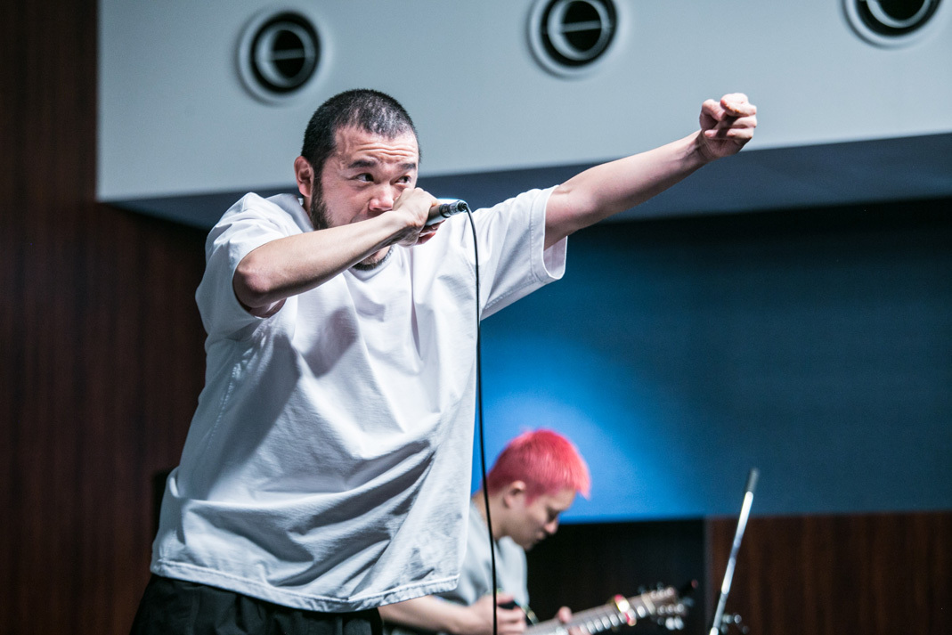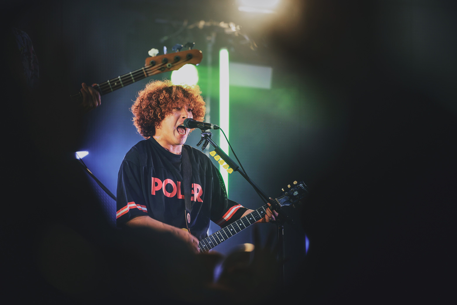 血管が切れるのではと心配になるくらいの絶叫。その場にいた全ての人に届くヤバさとこちらは思うが、「この時間、俺たちのライブを観ずに中庭で休んでいる人がずっとジャンケンに負け続けますように」とアフロは言う。でも、その後すぐの「いつの日か届いたらと思っています」と続けた言葉が良かった。単なる皮肉だけではなくて、やはり届けたいという本気の思いが届く。競艇場ということもあり、この場には「たくさんの人の涙が落ちています」と語りかけ、「ステージもギャンブル」と言い放ったのも勝負師の気合いを感じた。