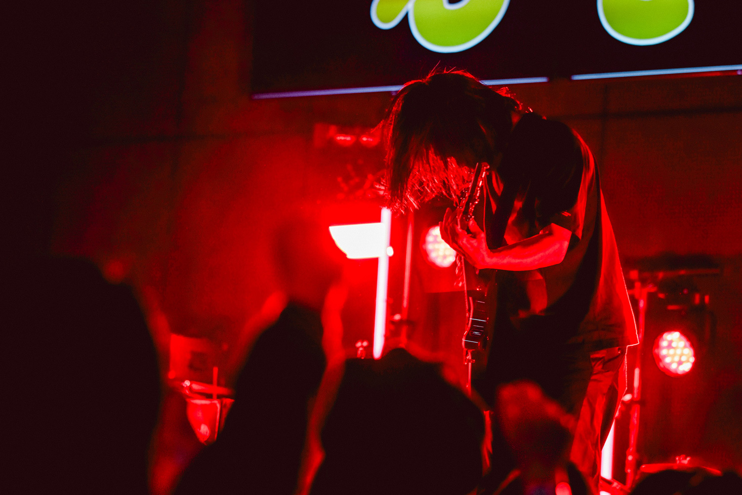 昼15時40分・UZU HALL。KANA-BOON。オリジナルメンバーは谷口鮪だけであり、現在はベースの遠藤昌巳とふたり。ギターとドラムはサポートメンバーだが、1曲目「シルエット」からバンドが楽しいんだろうなと感じた。色々な出来事を経験してきたバンドだからこそ、余計に感じるし、全く新しいバンドだとも感じた。特に鮪が解き放たれている。本人も「昨年末からの大スキャンダルを経て復活しました!」と宣言していたが、本当に吹っ切れている。そして、康雄に「KANA-BOON、かっこええな」と今の体制を褒めてもらえたことを明かして、自分たち世代にとっては四星球との対バンは負け戦だとも明かす。でも、負けたくない、認められたいと語り、「ロック精神のひとつには四星球がいるんですよ」とまで言う。対バンも経て、今回呼んでもらえたことを「認めてもらえた気がする」と話した。個人的にも現体制でのライブを観るのは初めてであり、四星球が認めている理由もわかった気がする。「絶好調で絶頂で、四星球にバトンを繋ぎたいんですけど!」と鮪は言っていたが、完璧に完全に絶好調で絶頂でバトンを繋いだ。