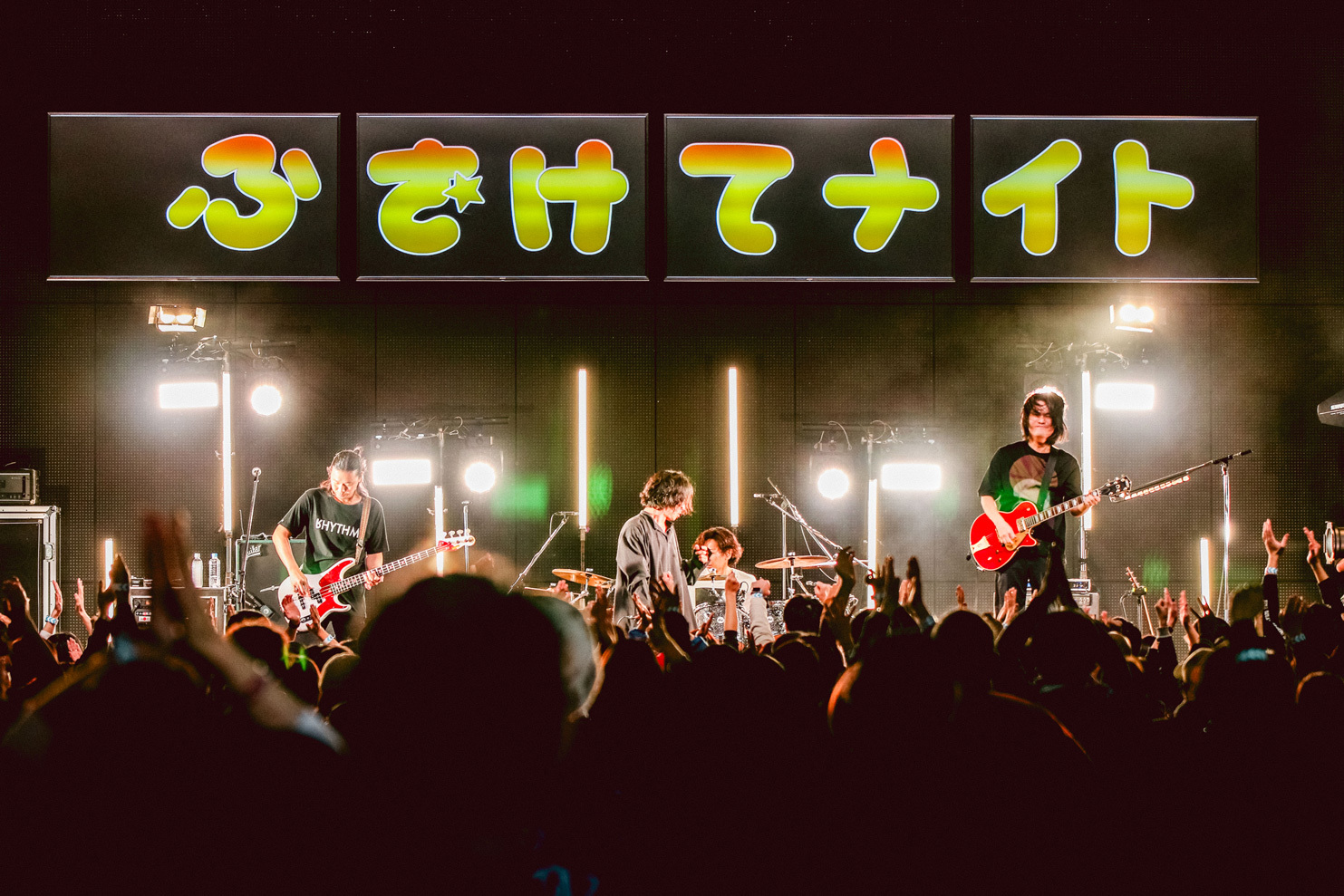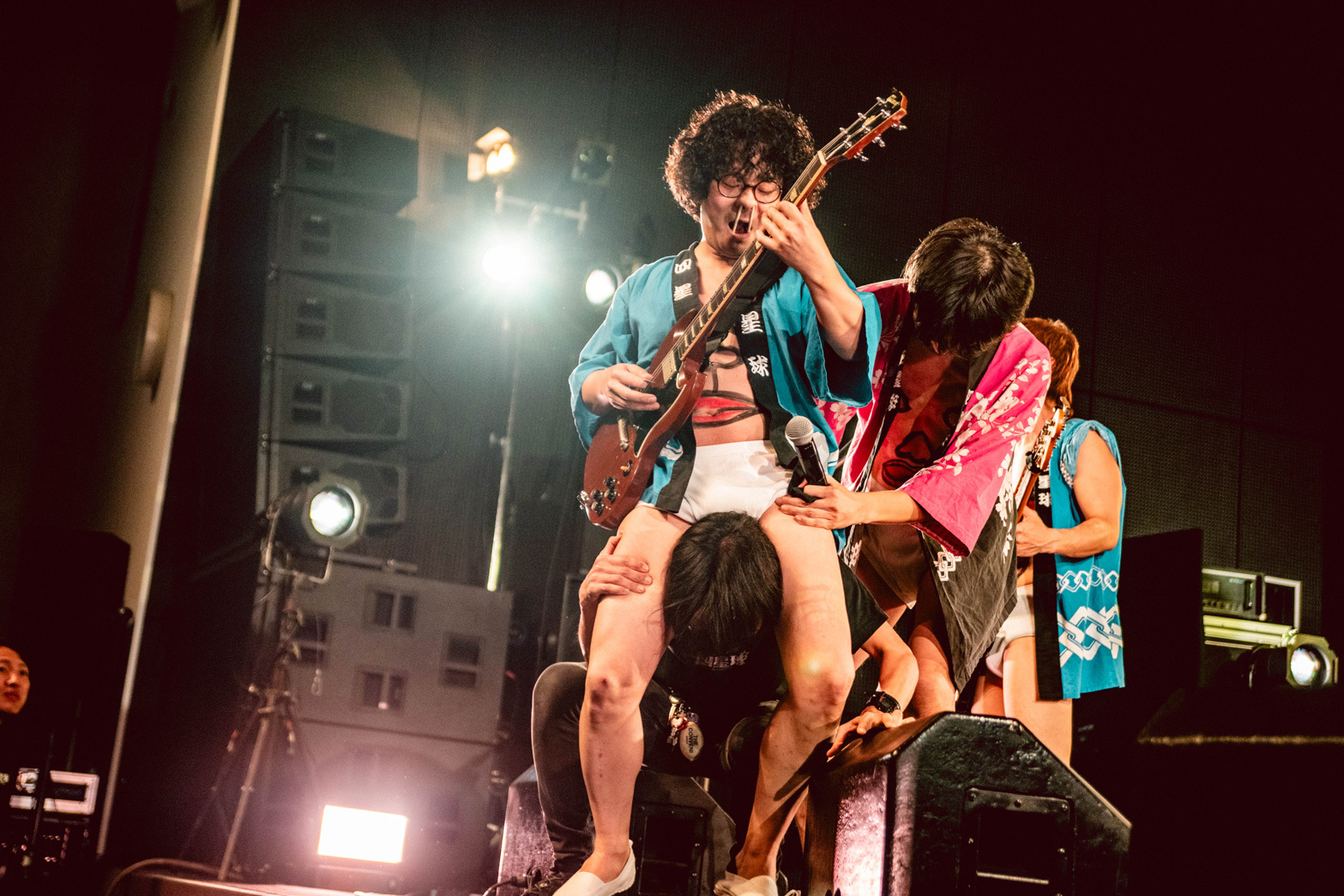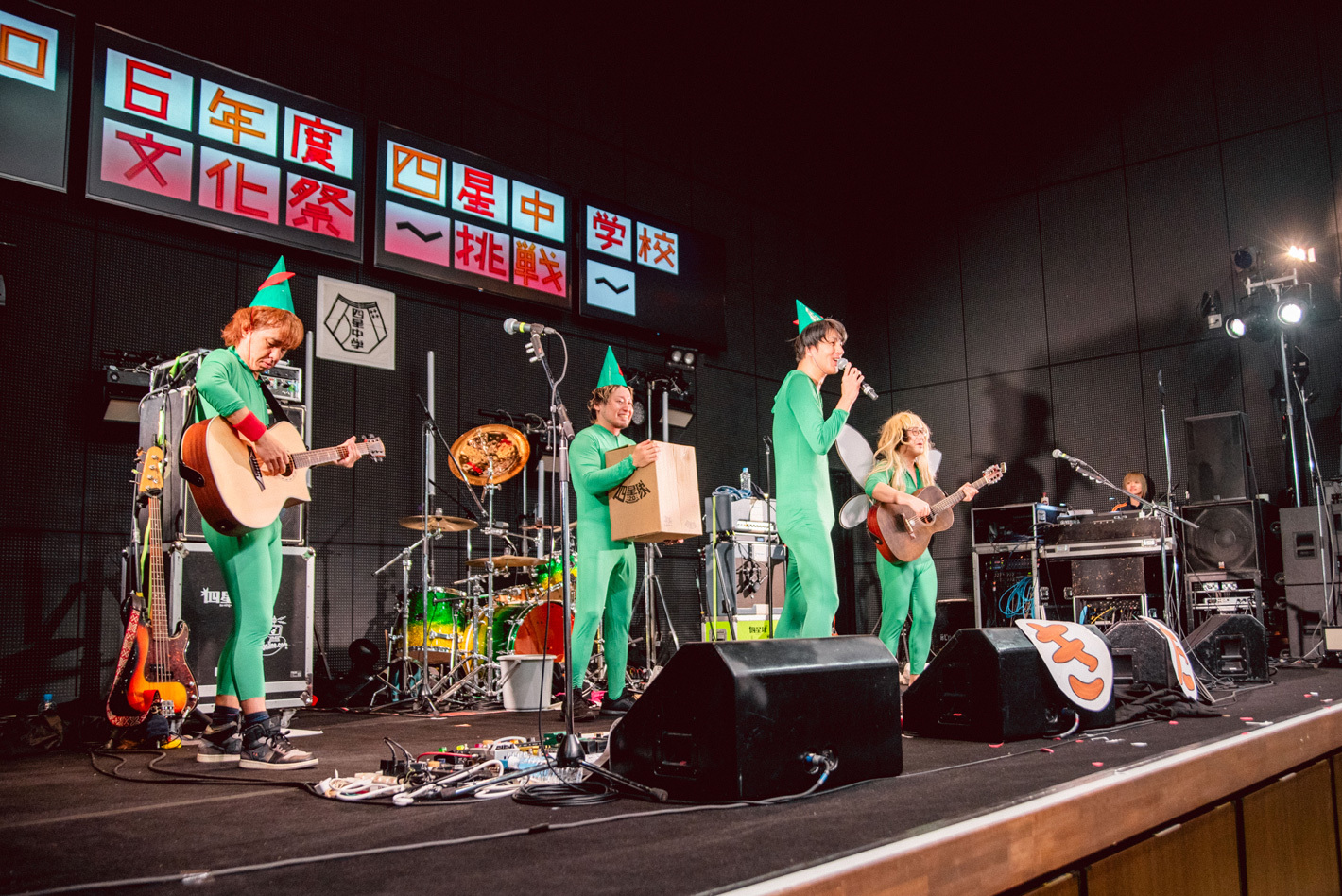 そんな衝撃的でけったいな終わり方だったが、終わる直前のMCで、康雄は大事なことを語っていた。『四星中学校文化祭』というワンマンライブシリーズを約15年に渡ってやっていると話して、バンドは30代後半から40代に差し掛かる時が苦労することも打ち明ける。それは子供が出来たり、親の面倒をみたりとお客さんの環境が変わることも大きいので必然だと言いながらも、「そこを変えますので。方法としてはおもろいことをするしかないので!」と決意表明を。もちろん、こんなことも台本には書いていない。リミッターが振り切れた時の康雄から飛び出すエモーショナルでパッションな言葉たちには、いつも痺れてしまう。