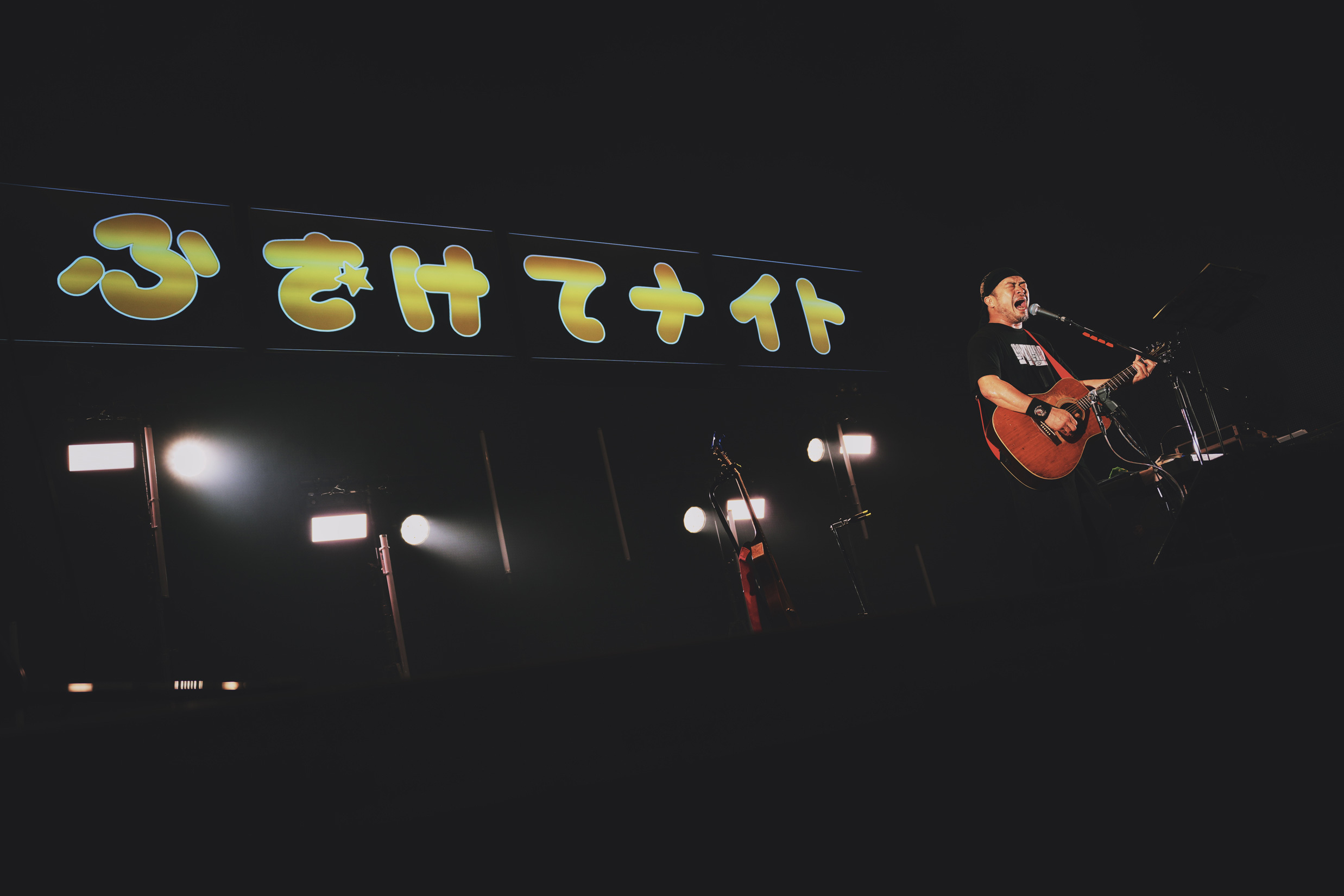 という言葉もあったが、この街で開催する意義を本当に感じる。アンコールラストナンバー「明日までkm」では、康雄がスタッフに耳打ちをして、まさやんを肩車で担がせようとするが、重くて持ち上がらず、それを康雄が支えて何とか持ち上げようとするが、やはり持ち上がらない。こんな何でもない場面がまた何だか泣けてしまう。全力や全身全霊という言葉は簡単に使いたくないが、こういう時こそ使うのだろう。