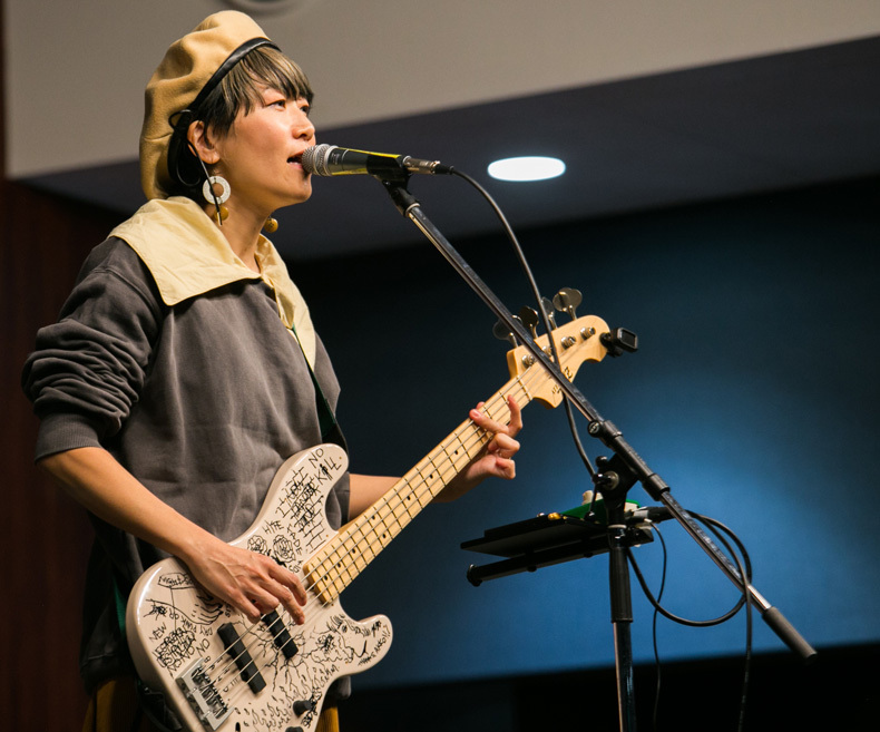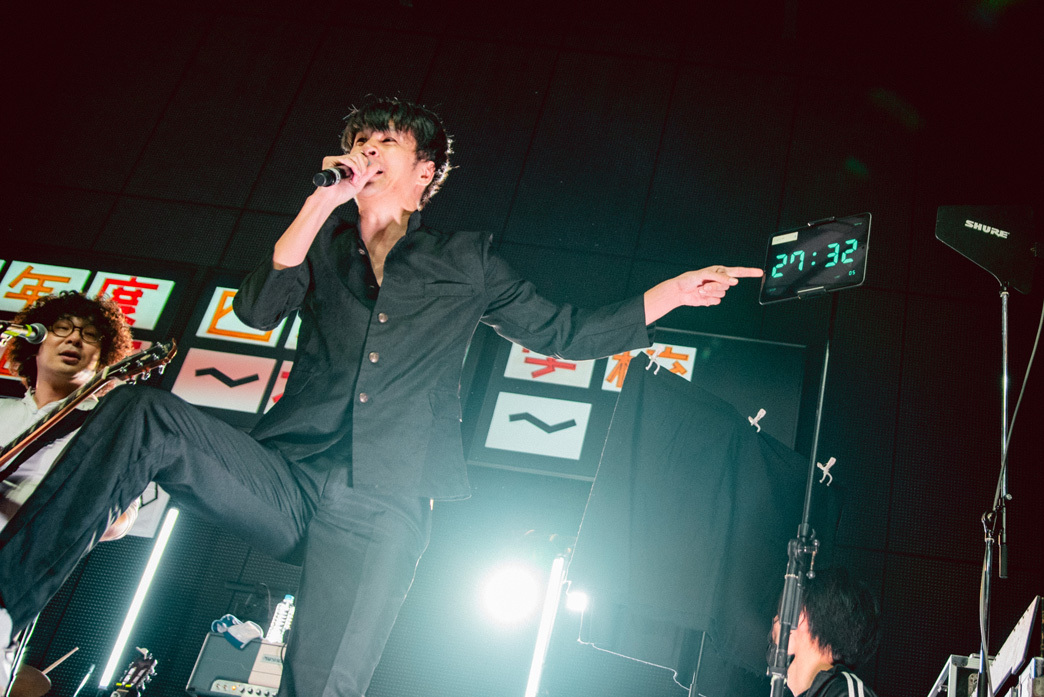 この秋リリースされたばかりのニューアルバム『音時計』から「エラ‐むかしむかしあるところに‐」、でもって「シンデレラストーリーには興味が無いんです!」という言葉が印象的だったメジャーデビュー前のエモーショナル過ぎるナンバー「出世作」や初期楽曲「ギンヤンマ」と畳みかけたところで2回目となるチャイムがなる。つまりは13曲で20分経過。最後2曲は「刹那くんおはよう‐86400歩のパンク‐」と「薬草」。15曲トライアル終えたところでタイマーを観ると27分32秒!