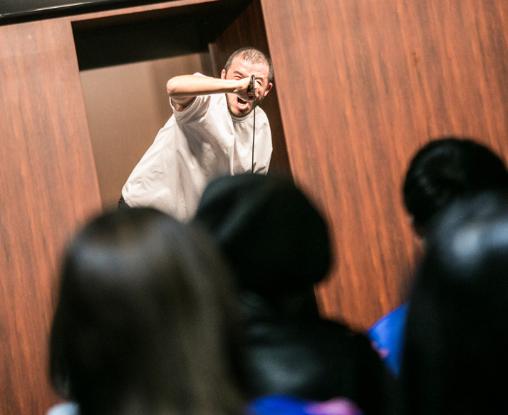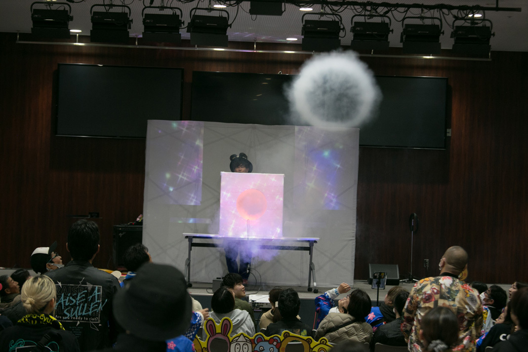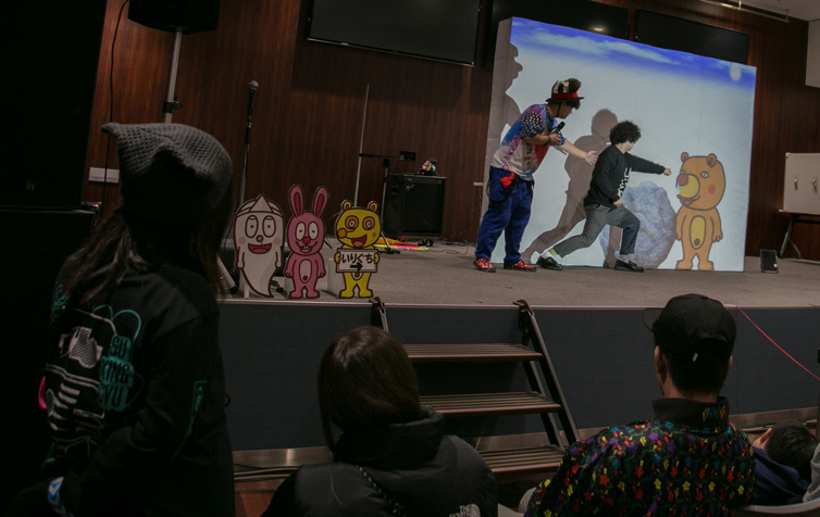 ラストナンバー「ミッドナイトレインボーピーターパン」では、康雄が観客に観客同士の肩車を促し、ボルダリングスペースにいる親子連れにも肩車を促した。